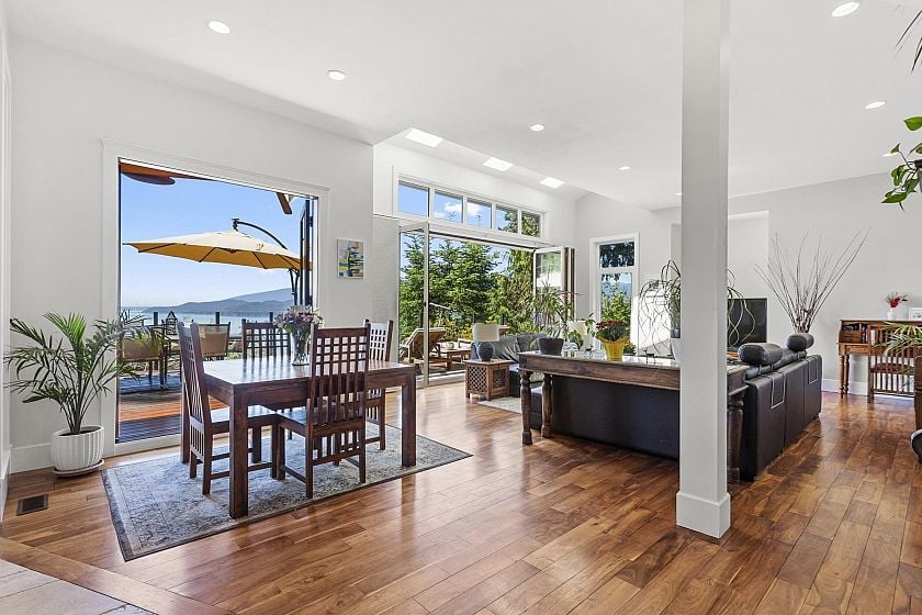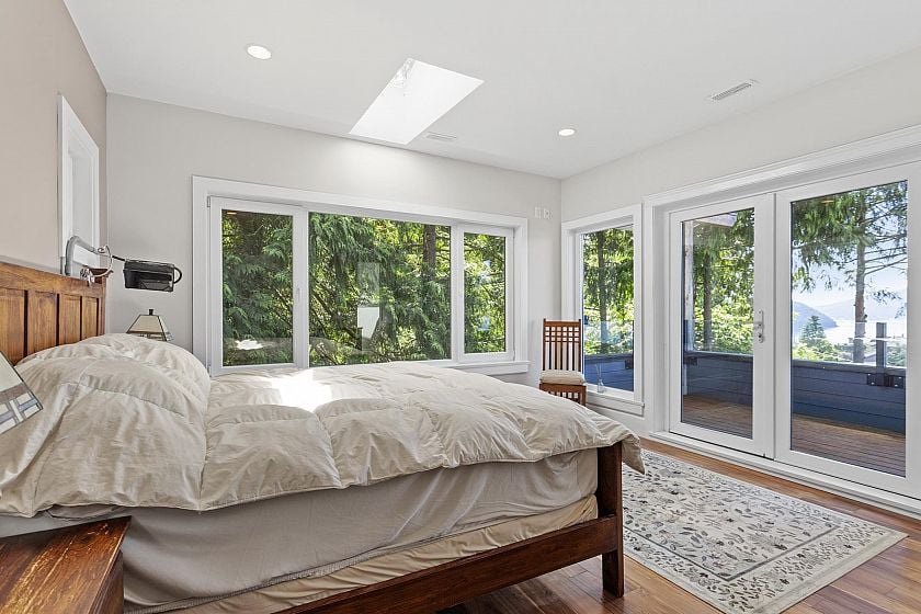 LIONS BAY CUSTOM HOME. Architecturally designed by renowned Rommel Design, this gorgeous near-new 2012 home offers 3740 sq ft (4 bed/4.5 bath/office/rec room) of refined living is set at the end of a peaceful cul-de-sac & enjoys panoramic ocean & island views from all levels. Features high-end Bosch/Jenn Air kitchen appliances, Travertine tiles & Brazilian hardwood floors, 7 skylights, UV-protected double-paned European windows & doors, NanaWall for indoor/outdoor living, central heating (connectivity for heat pump), HVAC. With a level driveway; 2 car garage; Hardie Board siding; 50-year asphalt roof; high-capacity septic; earthquake-rated construction; leaf gutter guards; fibre-optic internet; 200-amp electrical system; revenue suite potential; this beauty is functional & efficient.