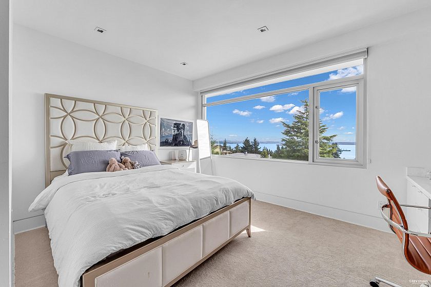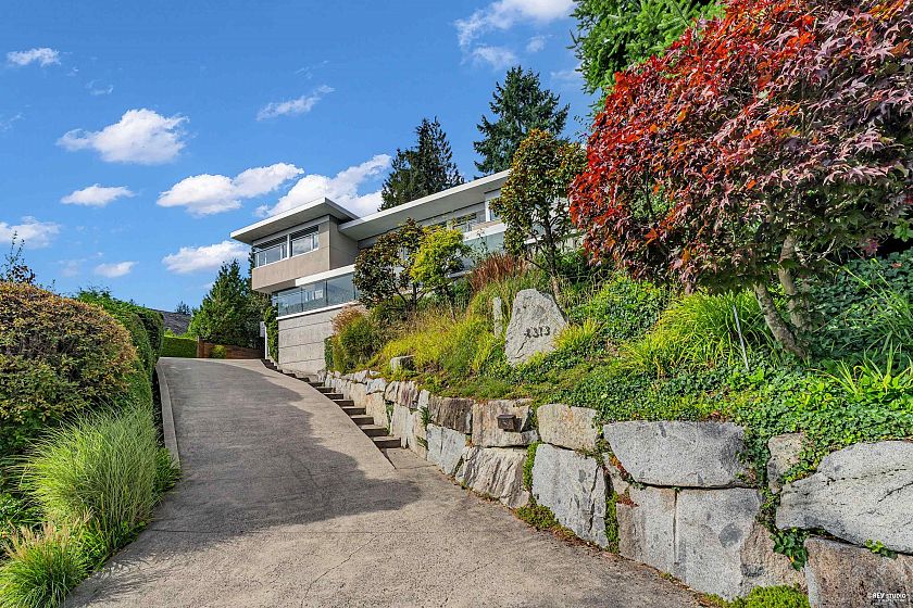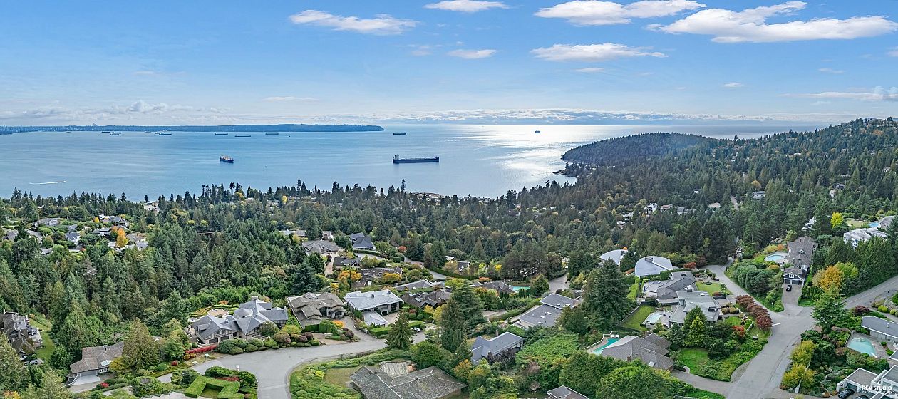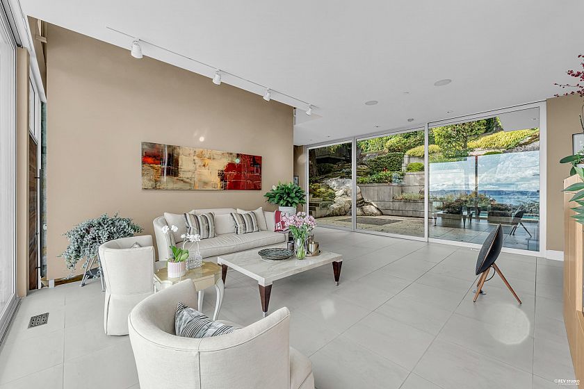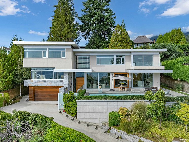 Architectural masterpiece in prestigious Rockridge! This 5,748 sq ft contemporary residence on a 12,633 sq ft south-facing lot captures breathtaking ocean, city and sunset views from all levels. Built with concrete, steel and glass, it showcases soaring ceilings, floor-to-ceiling windows, radiant heat, A/C, and a state-of-the-art smart home system. Features 5 beds, 7 baths, gourmet kitchen with top-tier appliances, media room, wine cellar, and elegant indoor-outdoor flow. Resort-style pool, spa, terraces, and landscaped gardens offer ultimate privacy. Close to Caulfeild Elementary and Rockridge Secondary.