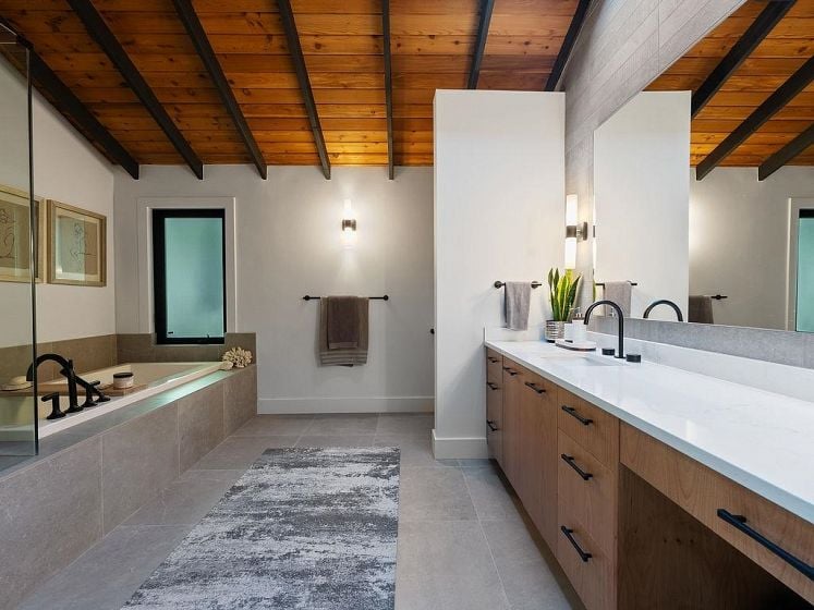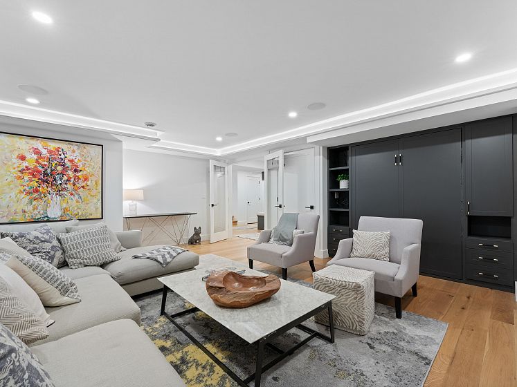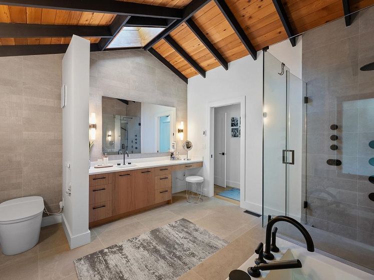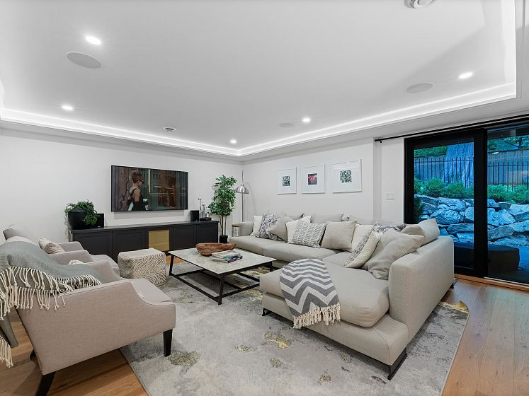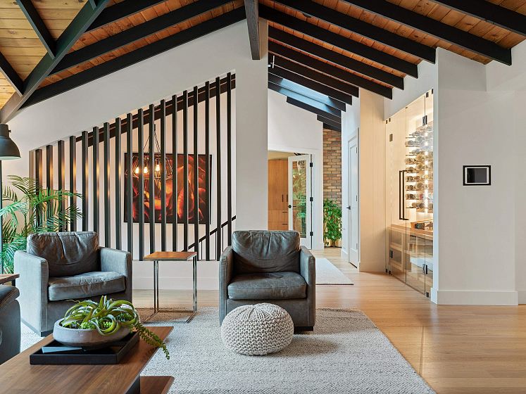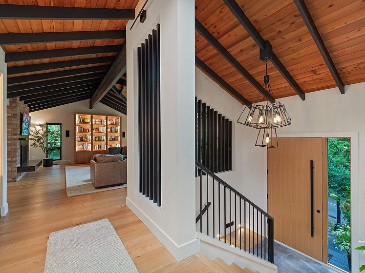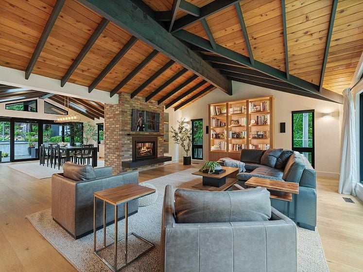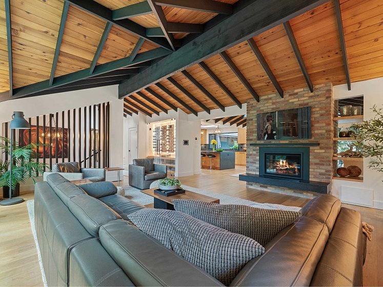 Nestled in one of West Vancouver’s most desirable neighbourhoods, this stunning residence is a true architectural gem. Originally designed by renowned architect Bob Lewis, this post-and-beam masterpiece has been completely rebuilt to the studs, blending timeless mid-century design with luxurious modern living. From the moment you step inside, soaring wood-beamed ceilings, expansive walls of glass, and an open-concept floor plan create an airy sense of space while capturing breathtaking natural light. Every detail has been meticulously curated — from the custom millwork and high-end finishes to the seamless indoor-outdoor flow ideal for entertaining. Multiple living areas spill onto sun-drenched patios, creating the perfect setting for family gatherings with nature everywhere one looks.