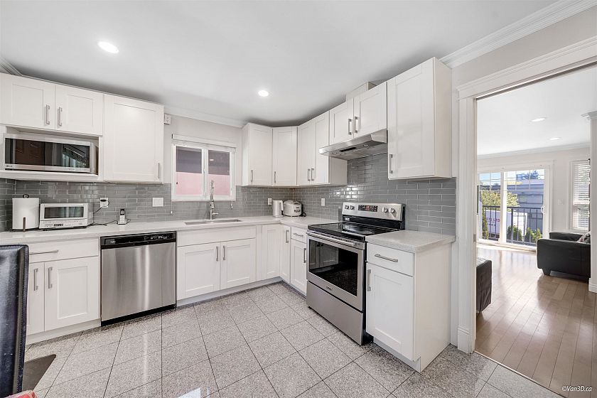 Incredible value in Marpole! Newer 2-storey home with 6 beds & 4 baths, including 2 mortgage-helper suites (1-bed + 2-bed). Top-floor private and large master bedroom boasts sweeping views of Mount Baker and Gulf Islands. Main level features 2 bedrooms, hardwood floors, gas fireplace, granite counters, maple cabinets & s/s appliances. Lower level has 2 suites (potential mortgage helpers). One bedroom suite on one side and a two bedroom suite on the other (great for a small family with a child). Conveniently located across from Marpole Community Center, Oak Park (across the street), Oakridge Mall nearby and 10 min drive to Richmond Airport. Potential land assembly and a perfect home to live and hold! Call us today for a private showing!