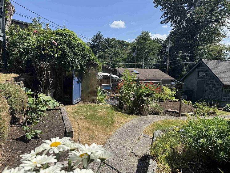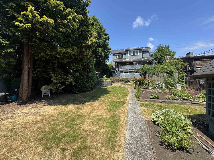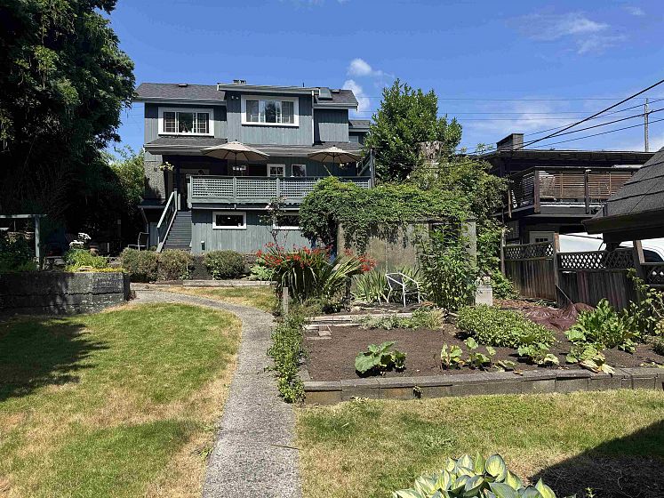An absolutely charming home built in 1928 with addition/renovations in 1994 with some original features, heaps of privacy, and tons of possibility. The sunny deck and backyard have plenty of space for veggie gardens and a carriage house with no sacrifice on space. There are 2-bedrooms up and the option for a 3rd in the open flex space with a full bathroom on each floor. A final bedroom is on the lower level off the large family room. With a generous kitchen pantry, basement storage room, detached garage and over-sized closets, there is storage galore and a workshop under the deck too! The 2-level original garage off the back laneway has space for one car or a laneway house conversion.