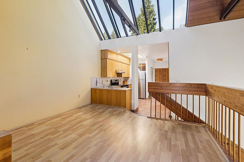 One-of-a-kind Upper Lynn architectural home, designed by Dick Goldammer, set on a south-facing lot backing onto a peaceful greenbelt. Designed for privacy and connection to nature, it features vaulted cedar ceilings, expansive picture windows, and skylights that fill the home with light. The near-level main floor includes a kitchen with large eating area overlooking the living room below, plus two bedrooms, including a primary with ensuite and balcony access. The walk-out lower level offers a striking sunken living area with wood fireplace, a third bedroom, den, and large laundry/utility room. Set on a 56’ x 130’ lot with open parking and a cedar-lined carport, just steps to Upper Lynn Elementary, Argyle Secondary, and endless trails—a true architectural gem ready to be reimagined.