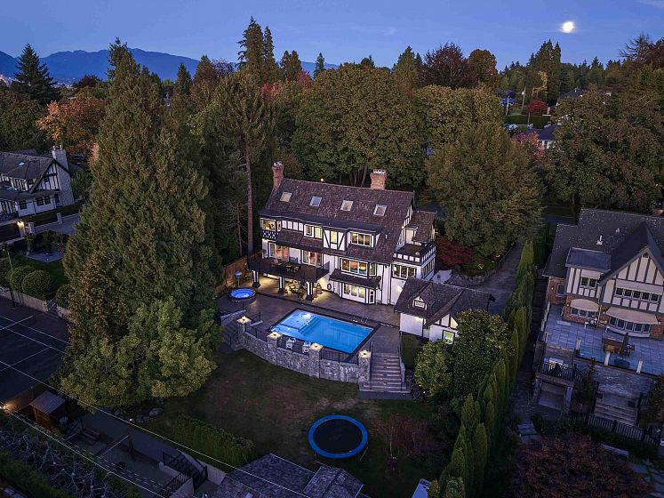 Nestled within Vancouver's prestigious Shaughnessy, this stunning Tudor inspired estate represents the pinnacle of luxury living following a meticulous $3 million renovation. The comprehensive transformation encompasses architectural magnificence at its finest. Situated on an impressive 105’ x 170’ lot, and showcasing 6,932 sqft. of meticulously crafted interior living space. The property exudes uncompromising quality with completely modernized infrastructure including new plumbing, 400 AMP electrical system, drainage, windows, and utility lines. The stunning west-facing sunny outdoor environment features professional landscaping and a resort-style pool and hot tub. This extraordinary residence combines timeless elegance w/contemporary conveniences.