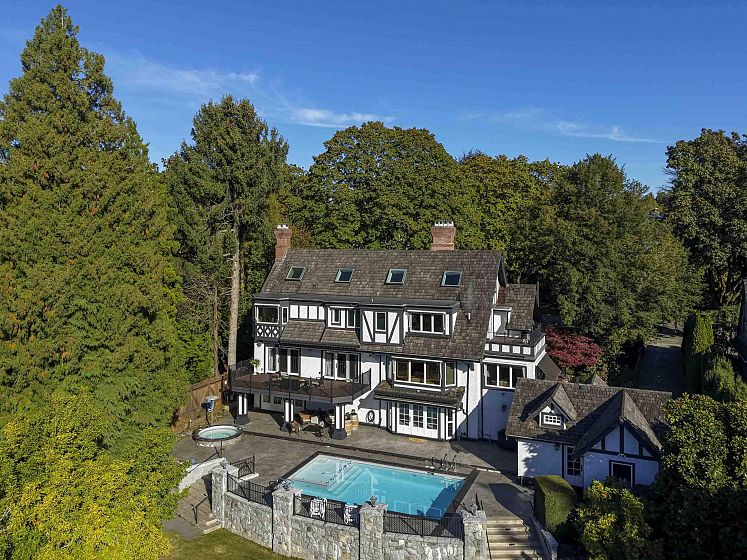 Nestled within Vancouver's prestigious Shaughnessy, this stunning Tudor inspired estate represents the pinnacle of luxury living following a meticulous $3 million renovation. The comprehensive transformation encompasses architectural magnificence at its finest. Situated on an impressive 105’ x 170’ lot, and showcasing 6,932 sqft. of meticulously crafted interior living space. The property exudes uncompromising quality with completely modernized infrastructure including new plumbing, 400 AMP electrical system, drainage, windows, and utility lines. The stunning west-facing sunny outdoor environment features professional landscaping and a resort-style pool and hot tub. This extraordinary residence combines timeless elegance w/contemporary conveniences.