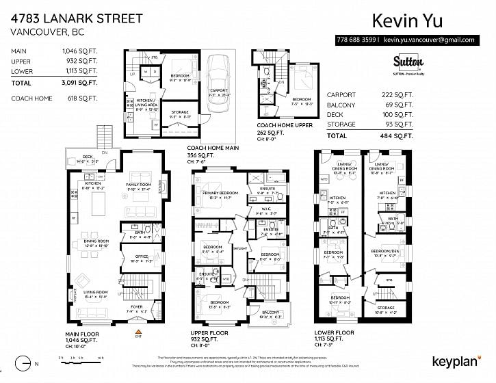 Welcome to this exquisite multi-suite home located on a quiet street, offering exceptional income potential and modern comfort. The upper level features 4 spacious bedrooms, perfect for a growing family. Includes a detached 1-bedroom laneway home, plus a 2-bedroom suite and 1-bedroom suite in the basement, ideal for multi-generational living or rental income. Enjoy an open concept kitchen and a functional floor plan designed for modern lifestyles. Quality finishes include radiant floor heating, central A/C, built-in speakers, and a full security system. Conveniently close to transit and within walking distance to Kensington Park & Community Centre.