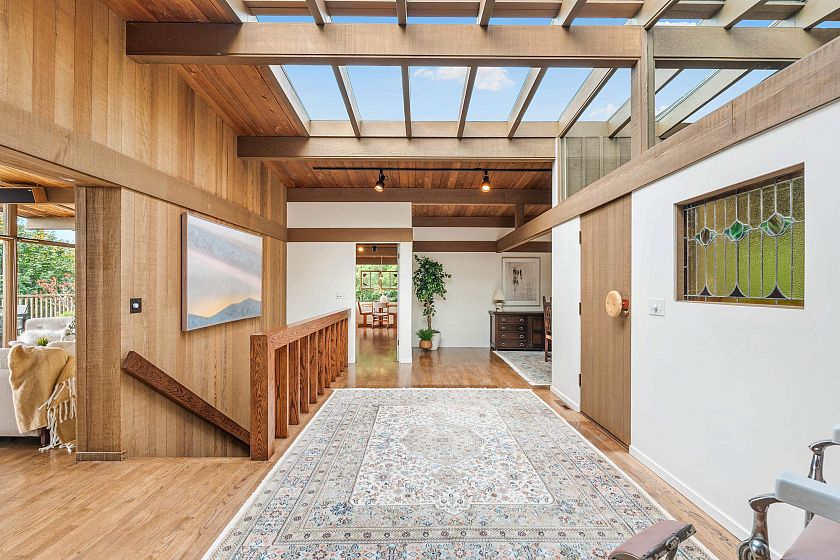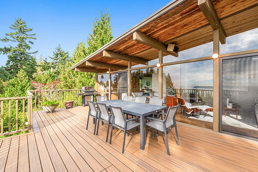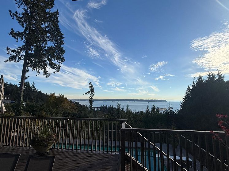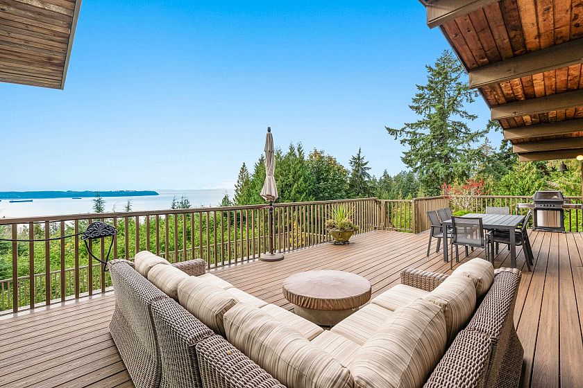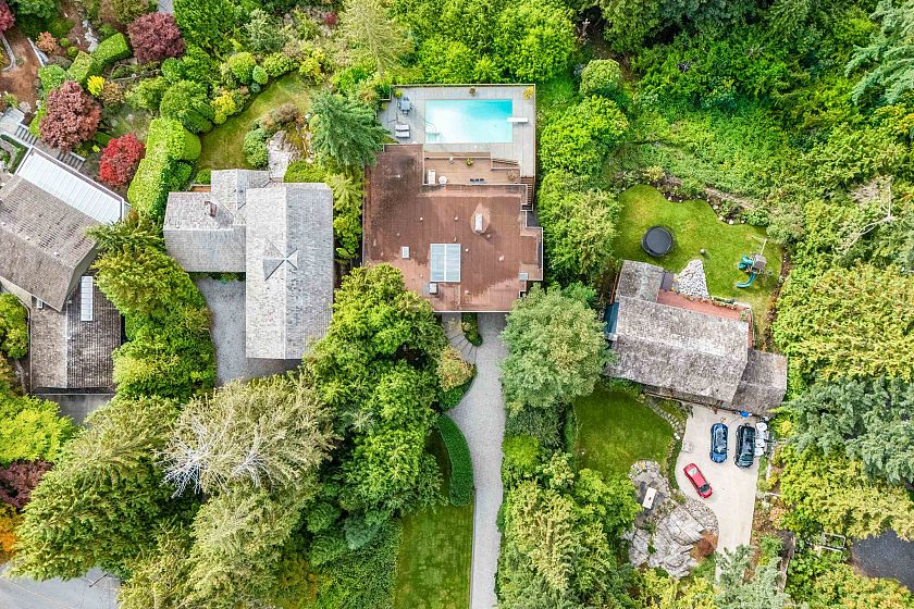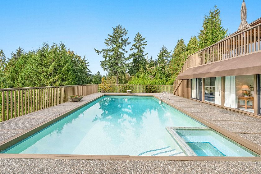 Incredible views are enjoyed from this gorgeous post and beam home situated on a level 20,474 sq. ft. property. Architecturally designed by Blair McDonald and meticulously custom built by Lauder Brothers for the original owners boasting spacious open rooms, an incredible foyer, 3,561 sq. ft. of living space, and sun-drenched South side swimming pool. The upper floor includes all the principal rooms along with a huge primary suite with private sitting area, second bedroom and a den. The lower floor includes 2 more bedrooms, recreation room, sauna, ample storage and sliding doors out to the massive pool deck with 30 x 63 foot pool. I love this home. Did I mention the spectacular foyer!