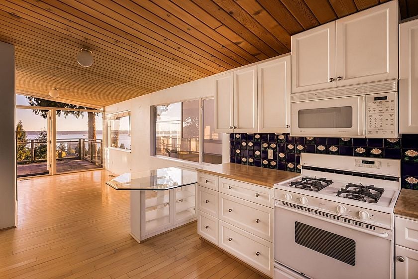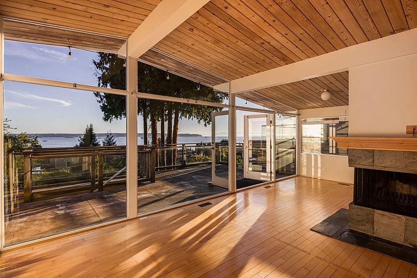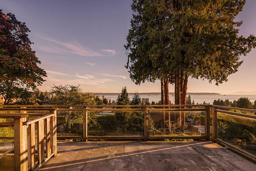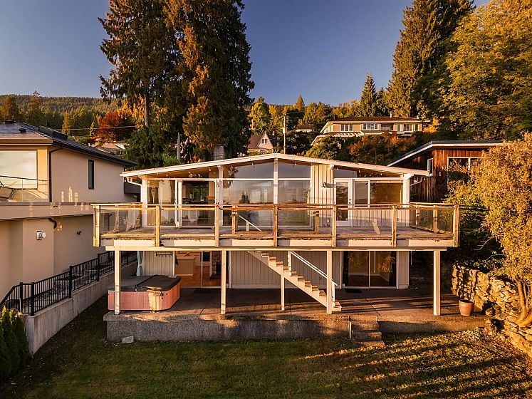 BREATHTAKING panoramic OCEAN and city views from this mid-century post-and-beam beauty, perfectly sited on a 50' x 152’ lot at the top of Dundarave. Delight in GOLDEN SUNSETS from the coveted SOUTHWEST facing backyard and entertain on EXPANSIVE view decks from both levels. Flooded with natural light through window walls & 9' vaulted ceiling, this 1905 SF, 3 BED, 2 BATH offers an open-concept layout, TWO bright generous sized kitchens and wood-burning fireplaces for cozy family gatherings. A RARE offering to enjoy AS-IS, ELEVATE or DESIGN your dream home in one of West Vancouver’s most sought-after enclaves close to top-tier schools, community centre, shopping and recreation.