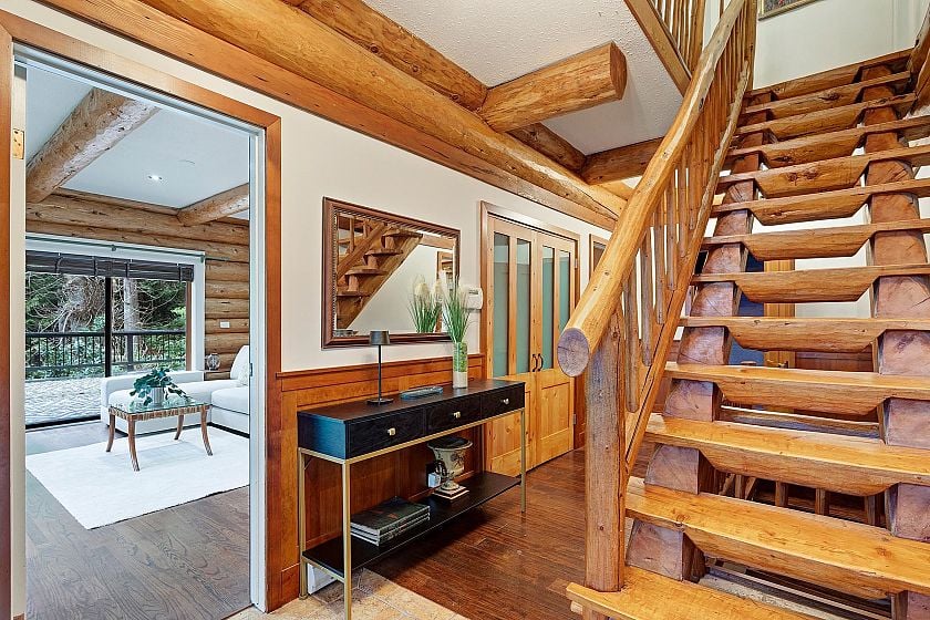 LIONS BAY MOUNTAIN ESTATE! This magnificent, private 4,147 sqft log home on 1/3 acre boasts 4 bedrooms, 5 bathrooms (including a licensed self-contained suite currently renting for $2500/month), separate office space, gym/sunroom, ample basement & attic storage all offering spacious comfort & luxury. Enjoy breathtaking ocean views in the midst of the tranquility of nature with easy access to hiking trails & beaches just minutes away. Perfect for entertaining the outdoor spaces are simply amazing and ideal for hosting gatherings or enjoying peaceful evenings under the stars. Parking for 6+ cars, and/or RV. Conveniently located within walking distance to shopping, schools, and public transport, this property offers the perfect blend of convenience and serenity.