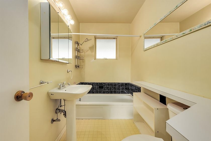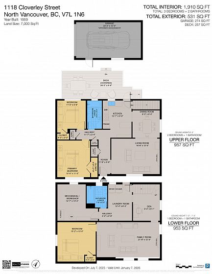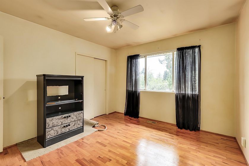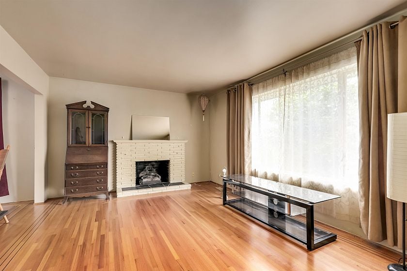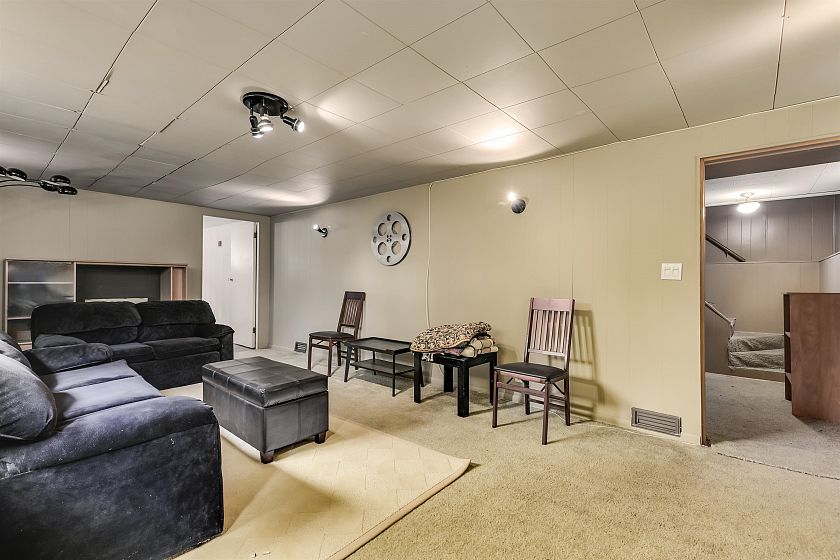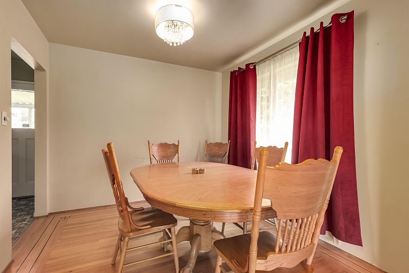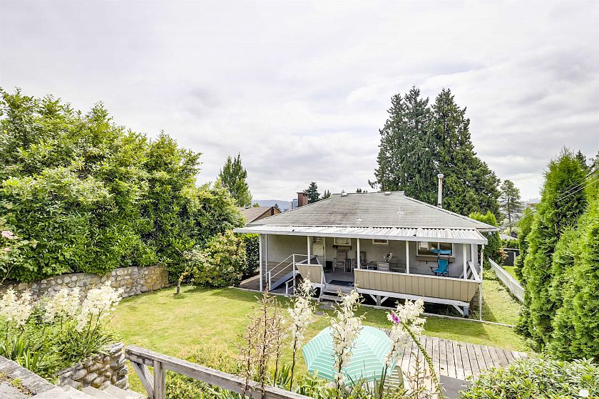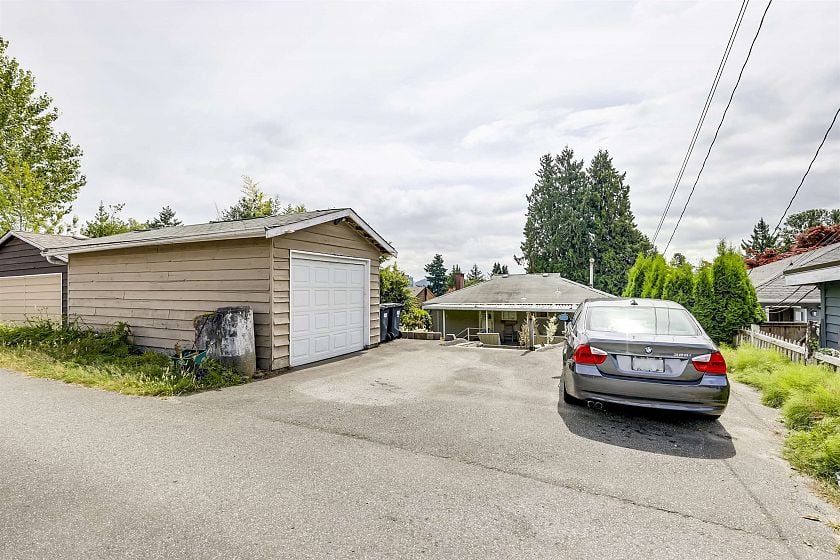 Family friendly Calverhall. 1950's bungalow. 2 bedrooms up and 1 down. 2 full bathrooms 1 up 1 down. Beautiful inlaid hardwood floors on main. Gas f/p up and wood burning down. Basement has suite potential. Lovely 50x140 lot with a terraced backyard, lane access to single car garage with power, plus open parking for 2 more vehicles. Good bones, needs some reno/updating or hold and build. Close to schools, parks, shopping, dining and 2nd Narrows bridge. peek a boo view. Perfect starter home.
