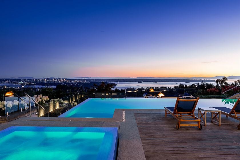 The King Georges Estate is a European inspired World Class luxury residence situated on a .68 acre property in West Vancouver’s most exclusive British Properties enclave providing spectacular views of the ocean, Stanley Park and downtown skyline. Experience 11,279 sf of luxurious living space providing a sophisticated lifestyle that combines timeless Italian sophistication and modern elements that blend seamlessly to create an international masterpiece. Features include Italian marble floors throughout, a sensational kitchen with all top grade appliances, private elevator to all 3 levels, Control 4 automation, state of the art home theatre, resort style fitness center, entertainment lounge with wet bar, temperature controlled wine room and 8 car garage with heated driveway.