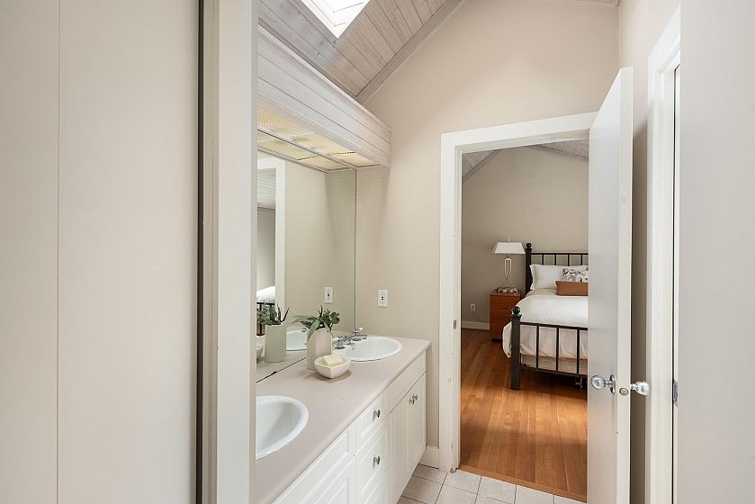This exceptional semi-waterfront home in Olde Caulfeild blends Hamptons elegance with West Coast modern charm. Nestled on a 15,156 sf lot, this 4,570 sf residence offers serene water views and luxurious outdoor spaces. Vaulted ceilings, skylights, and seamless indoor-outdoor flow create a charming yet relaxed home. Lovingly updated and added onto over the years the main level features a stunning great room, refined office, cozy den, living & dining rooms that capture both light and water views and an airy south-facing kitchen and family room. Four bedrooms and three bathrooms upstairs. Huge main floor laundry/mudroom with direct access to the triple car garage and level driveway. Just steps from Tidley Cove and Lighthouse Park, this property offers a rare and truly special opportunity.