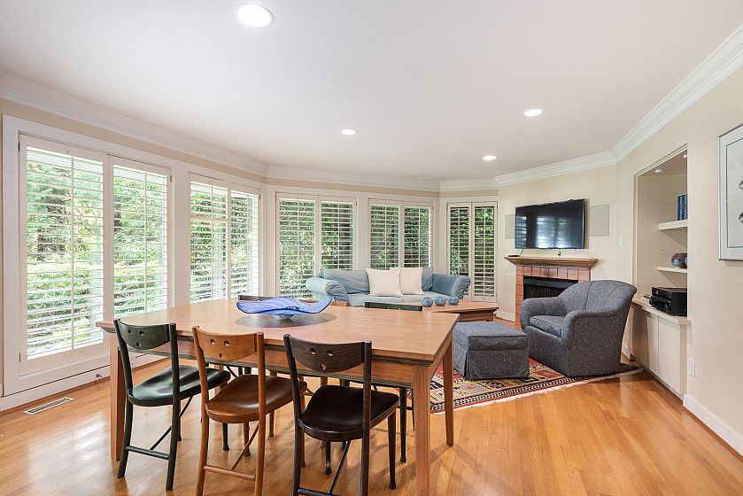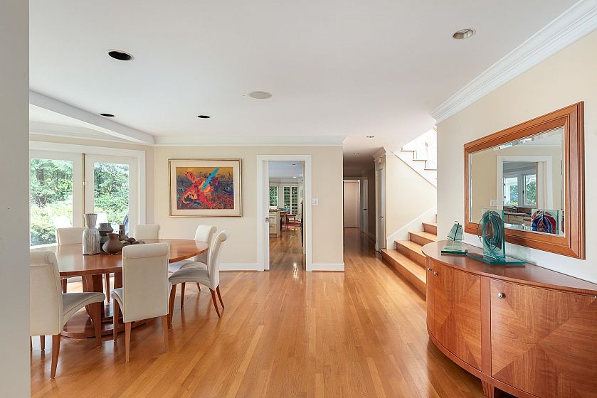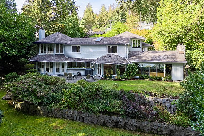 This exceptional semi-waterfront home in Olde Caulfeild blends Hamptons elegance with West Coast modern charm. Nestled on a 15,156 sf lot, this 4,570 sf residence offers serene water views and luxurious outdoor spaces. Vaulted ceilings, skylights, and seamless indoor-outdoor flow create a charming yet relaxed home. Lovingly updated and added onto over the years the main level features a stunning great room, refined office, cozy den, living & dining rooms that capture both light and water views and an airy south-facing kitchen and family room. Four bedrooms and three bathrooms upstairs. Huge main floor laundry/mudroom with direct access to the triple car garage and level driveway. Just steps from Tidley Cove and Lighthouse Park, this property offers a rare and truly special opportunity.