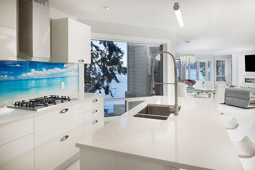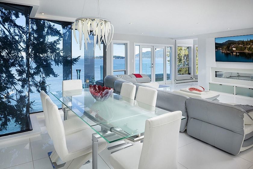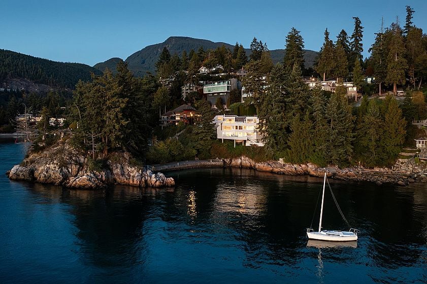 Spectacular waterfront architectural estate by Christopher Bozyk overlooking Balmy Beach. Situated on a private 16,500 sqft property at the end of a quiet cul-de-sac, this 5,700+ sqft, 5 bedroom home offers breathtaking southwest ocean views including Passage Island, Bowen Island out to Vancouver Island. Designed to maximize natural light with soaring ceilings, walls of glass, and expansive decks for seamless indoor-outdoor living. Features include a gourmet kitchen with high-end appliances, grand principal rooms, and 3 en-suited bedrooms upstairs, including a stunning step up primary suite with private deck. Lower level with 2 additional bedrooms, bar, and rec room opens to oceanside terraces. Complete privacy, lush landscaping, 3-car garage, and access to exclusive Parthenon Park.