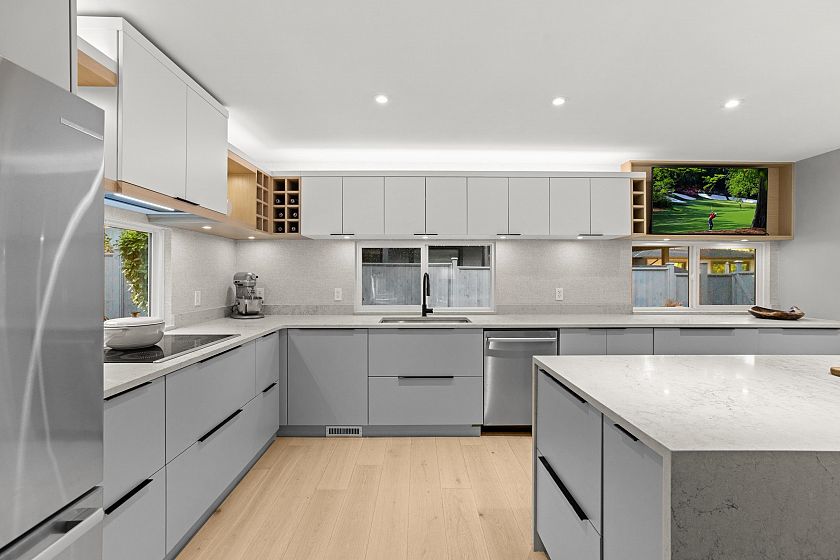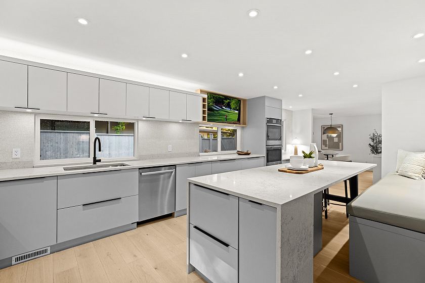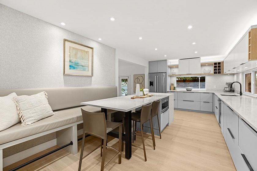 Fully renovated Mid-Century Modern home with interior by renowned designer Lisa King. Located in Eagle Harbour’s 30 km/h quiet zone, this 5-bed, 3-bath home showcases over $700K in upgrades. Enjoy a chef’s kitchen with built-in nook, spa-inspired baths, 2 wood-burning fireplaces, and new 200-amp electrical service ideal for EV charging. The flat 13,504 sq ft lot features a sunny backyard with a Pickleball Court. A self-contained 1-bed suite with its own laundry and entrance offers great mortgage support. Steps to Eagle Harbour Montessori, Park Verdun, Tennis Courts and Eagle Harbour Beach. Caulfield Village Shopping Centre and Rockridge secondary are just up the hill.