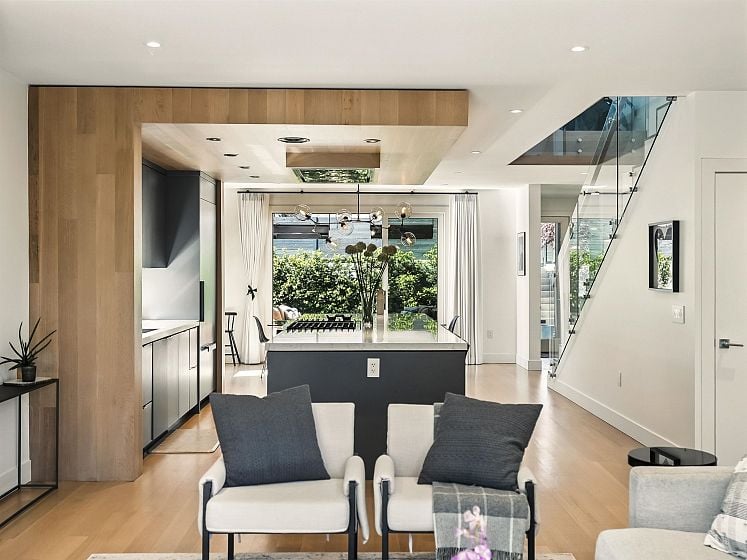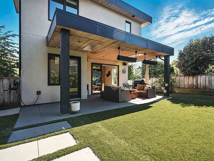 Stunning custom residence by Greenwest Construction, offering 4500sqft of refined living space & impressive 1840sqft of sun-drenched decks on a south-facing 6850sqft lot. This home features a 1000sqft rooftop deck complete w/ putting green, outdoor bar, hot tub, & breathtaking ocean/city views. Designed for versatility & lifestyle, the home includes a legal 2 bed suite & fully equipped coach house w/ potential to generate over $100,000/year rental income. Built to the highest standards with an ICF foundation, Japanese-grade framing, exterior insulation, radiant in-floor heating, HRV, A/C, & custom millwork throughout. Walking distance to Grand Boulevard and Shipyards, this is a rare opportunity to own a high-performance, design-forward home that perfectly blends luxury & functionality.