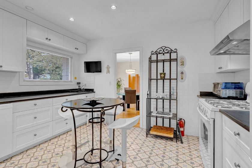 Exceptional opportunity to own this lovely home located in one of Vancouver's most sought after neighbourhoods in South Granville on a 9,300 square foot lot. The house has 4 bedrooms, 3.5 bath, separate living & dining rooms with oak wood floors and a fully finished basement complete with air conditioning. This property has two self contained one bedroom ensuites fully equipped with kitchens which provides excellent rental income potential. Alternately, one can enjoy this comfortable and quaint cottage with beautifully manicured garden, with possible redevelopment in the future. A Gem not to be missed!