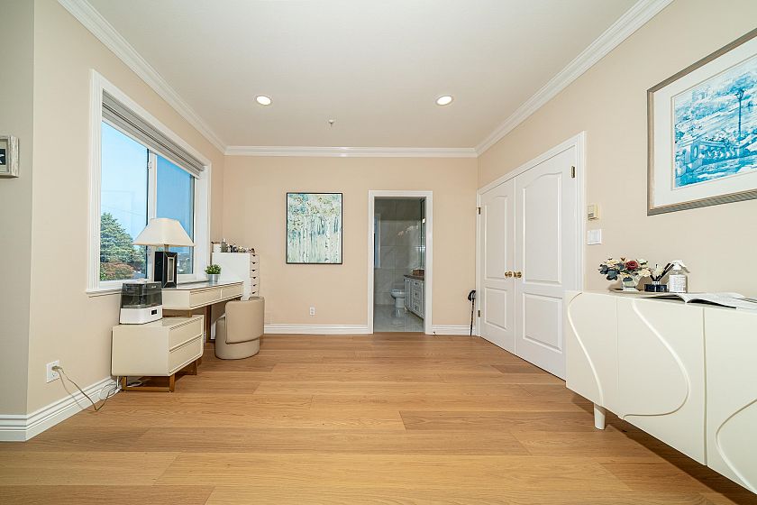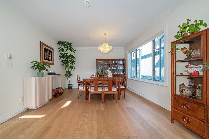 Renovated! Custom-Built Luxury Home in Prime Location. Immaculate one-owner home on a beautiful cherry blossom-lined street! Sitting on a 43x138 ft (5,950 SF) lot, this spacious home offers over 3,500 SF of living space with 5 bedrooms and 4 full bathrooms, including a main-floor bedroom and bath — perfect for guests or extended family. Features include a gourmet kitchen with custom maple cabinets, granite counters, and gas range, elegant formal living and dining rooms, and a large master suite. The bright lower level has 2 bedrooms, a large rec room/kitchen, and potential for an in-law suite. Extras: Heated hardwood floors, HRV system, and high-end finishes throughout. Just a 5-minute walk to the Canada Line and located in the Churchill School District. Open house: Nov 2, Sun, 2-4PM.