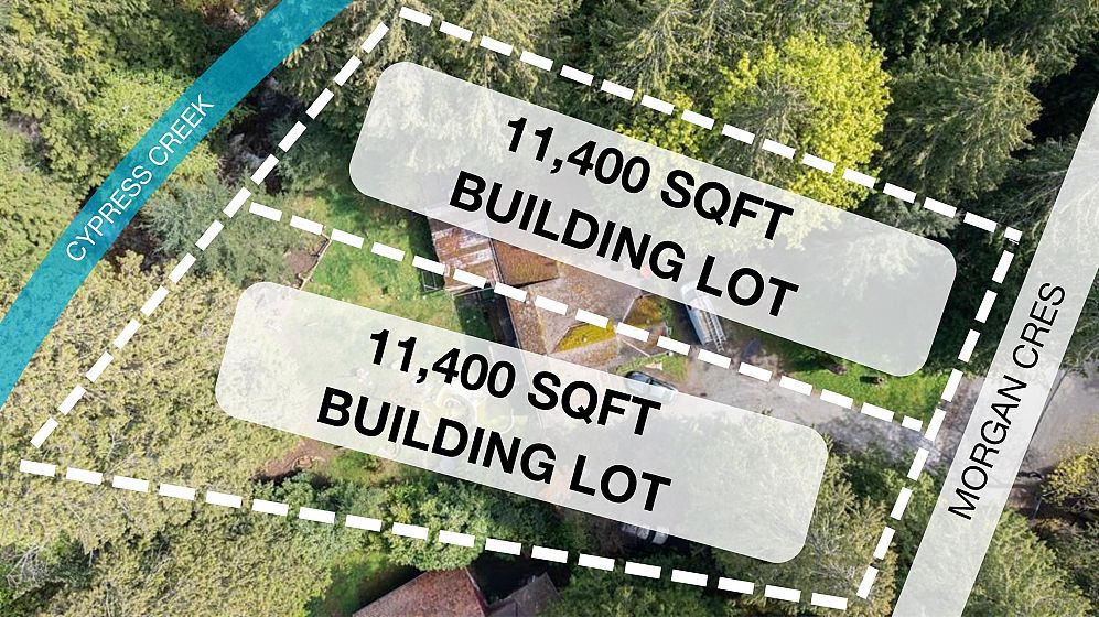 An unprecedented opportunity in prestigious West Vancouver. 4363 Morgan Crescent offers a magnificent, amalgamated land holding of 22,800 sq. ft., comprising of 2 district approved ready-to-build lots (11,400 sq. ft. each).This inviolable, prime location boasts a desirable flat topography and is discreetly enveloped by a lush private greenbelt, ensuring future residences enjoy unparalleled seclusion. An existing three-bedroom dwelling provides interim revenue via a month-to-month tenancy, facilitating an astute "hold and develop" strategy.The locale is sublime: a mere saunter to Stearman Beach and Isetta Cafe. High-calibre amenities, including Cypress Park Primary, tennis courts, and a baseball field. a truly prime opportunity to create an architectural masterpiece.
