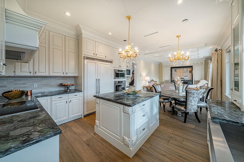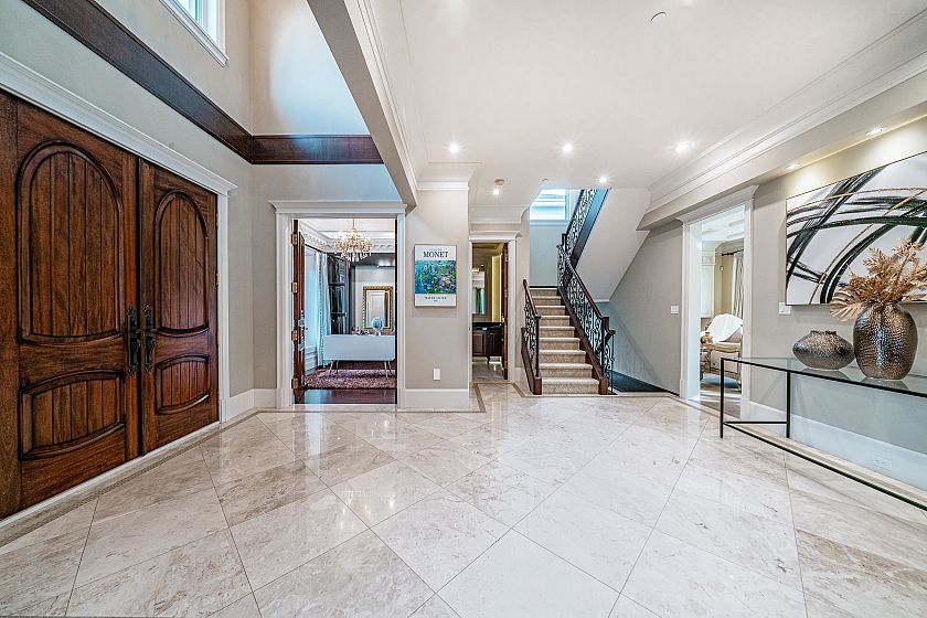 ABSOLUTELY GORGEOUS! South Granville! This 9-year-old home features 4,711 sq ft luxuriously living 7,670 (63 x123) sq ft lot. Elegant architectural white stone exterior couples with gorgeous landscaping, European S/S appliances Miele, SOLID WOOD doors in all levels.11 ft high ceiling on main. 4 bedrooms upstairs all with ensuite bathrooms. Main floor offers spacious living, dining & good-sized Wok kitchen, plus den. Basement features huge media room, recreation room plus wine cellar, steam & sauna and & 1 guest bdrm. Smart home system, 4 car garage, 8 camera security, etc.…. Excellent location for convenient access to Richmond, downtown, UBC, high school, park, T&T and cinemas. School Catchment: Sir William Osler Elementary & Eric Hamber Secondary. Open House: Feb 15, Sun, 2-4PM.