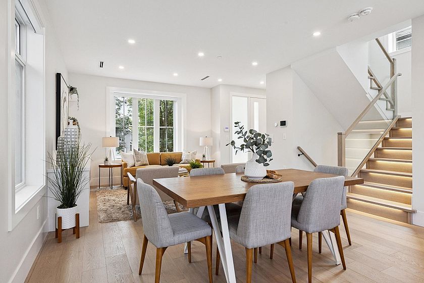 Welcome to 4115 Elgin, a stunning and versatile residence in one of Vancouver’s most desirable neighborhoods. This beautifully crafted 3-storey home offers over 3,100sqft of living space, thoughtfully designed for multi-generational living or exceptional rental income potential. The main house spans 2,484 sqft across three levels, features 4 beds and 3 baths, including a fully finished lower level with a separate 1-bed suite. High-end finishes throughout include radiant floor heating, air conditioning, laminate floors on main house, and a modern chef’s kitchen with sleek cabinetry and premium appliances. At the rear of the property is a fully detached 632sqft 1 bed 1 bath laneway home. With two income-generating suites, this home is a rare opportunity for families and investors.