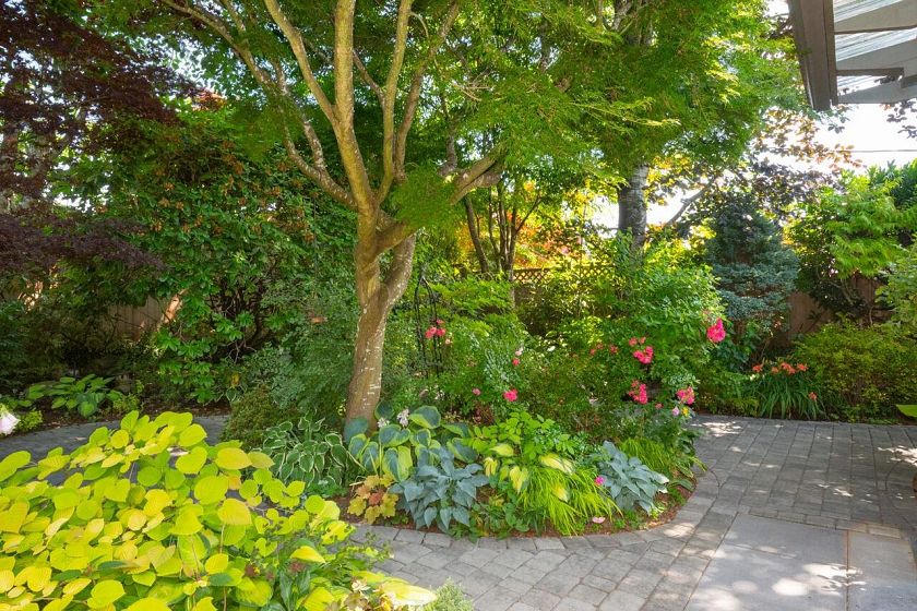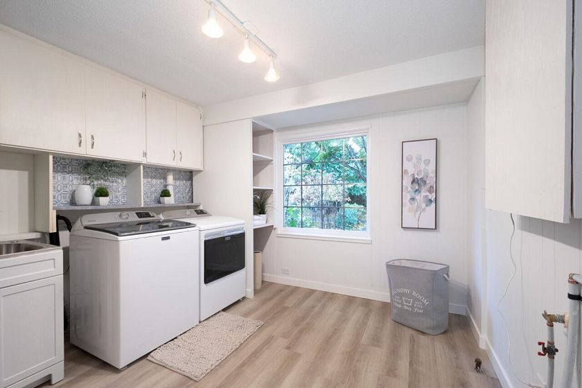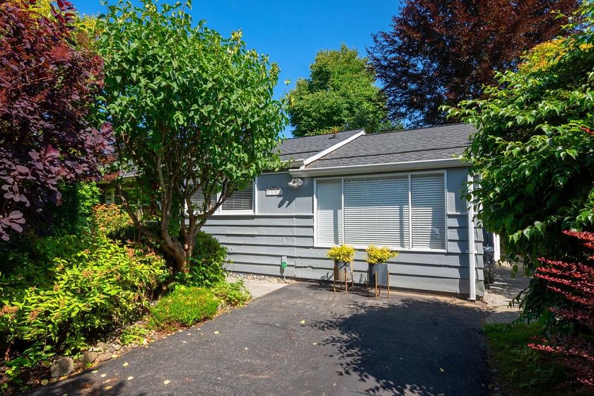 Welcome to this charming single-level home surrounded by lush, private gardens that create a true sense of tranquility from the moment you arrive. Offering over 1,300 sq. ft. of comfortable living space, this 2-bedroom + den (optional 3rd bdrm) residence features an open-concept layout with a spacious kitchen flowing seamlessly into the dining and living areas. An oversize sliding door extends the living space outdoors to a large covered patio — perfect for relaxing or entertaining amid the beautifully landscaped gardens. Nestled on a quiet street across from a greenbelt and the Spirit Trail, this home offers both privacy and connection to nature while being just minutes from Park Royal Shopping Centre, schools, parks, the Lion’s Gate Bridge, and downtown Vancouver.