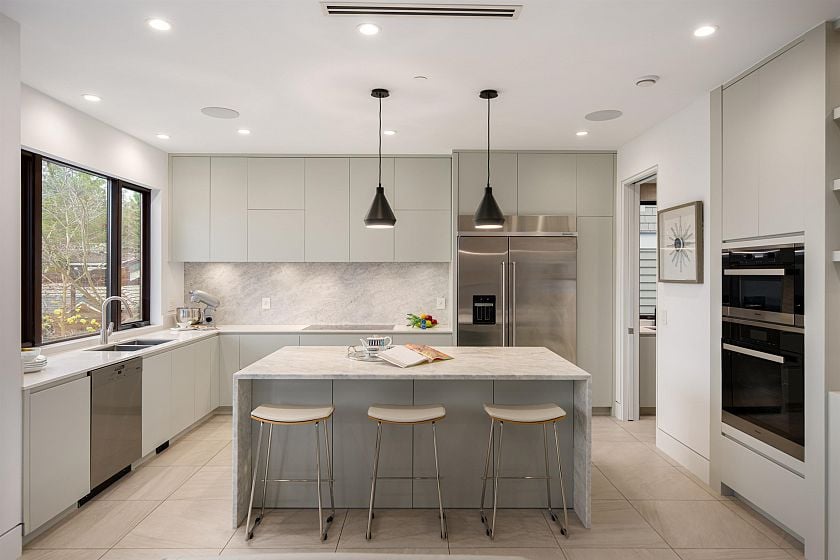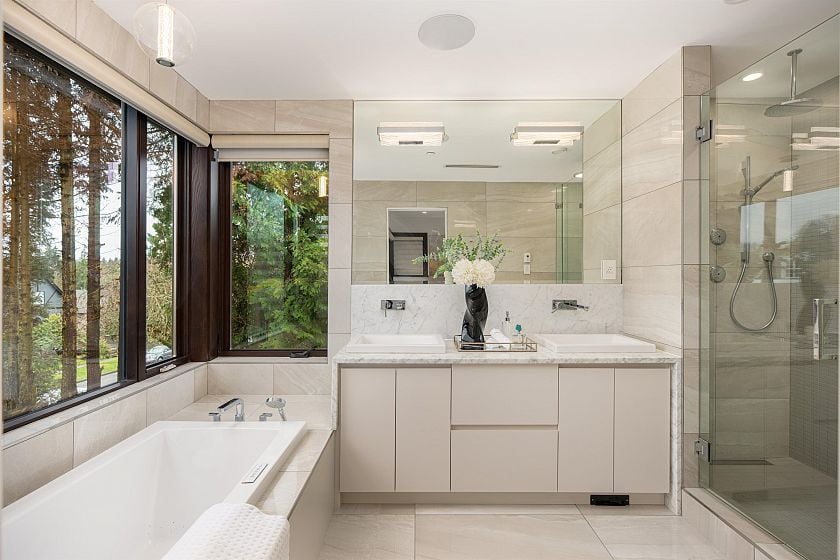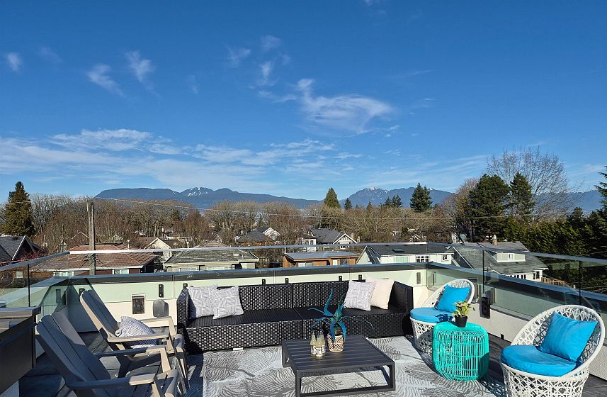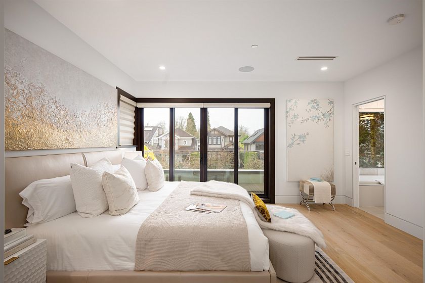 BEAUTIFUL UNIQUE CONTEMPORARY HOME IN PRESTIGIOUS DUNBAR LOCATION, sit on a SOUTH FACING LEVEL LOT. VIEWS OF MOUNTAINS from 482 sq.ft. of entertaining sized ROOFTOP Deck. Almost 3,640 sq.ft luxurious home, open layout concept, quality is built into every detail, height ceiling, extensive use tile & hardwood floor. 5 bedrooms & den, 4.5 baths. Open gourmet kitchen with custom design cabinetry and appliances like MIELE. Wok kitchen, Radiant floor heating system, A/C, HRV, SAUNA, WET BAR, HOME THEATRE & security with ADVANCED HOME SMART SYSTEM. 3 Car garage, PARK LIKE GARDEN with secured back yard. Steps away to QUEEN ELIZABETH ELEMENTARY & LORD BYNG HIGH SCHOOL, CLOSE TO ST. GEORGE'S & CROFTON PRIVATE SCHOOL, UBC, Shopping, Restaurant. Very convenient location ! MUST SEE !