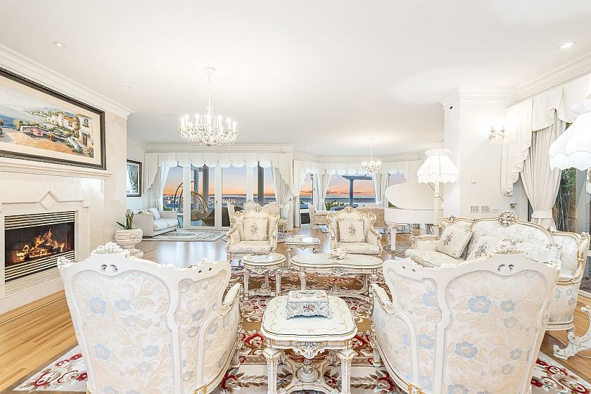 World-Class estate on King George’s Way in West Vancouver’s exclusive British Properties. 9,900 SF, 6-bed, 11-bath on private 26,000+ SF (.60-acre) gated lot. Panoramic views – Mount Baker to downtown skyline & harbour. Classic architecture, manicured gardens, & grand motor court. Highlights incl marble-clad foyer, formal living/dining, great rm w/wet bar, gourmet kitchen & family rm – opening to terrace & ocean views. Outdoor amenities incl pool/spa, fireside lounges, tennis court, & entertainment areas. Luxurious primary suite offers dual dressing rms & his-her ensuites, separate guest & nanny quarters below. Minutes to top schools, golf & shopping. Extras: media rm, study, elevator, 5–6 car garage, A/C, security sys & $1.5M in upgrades. Timeless elegance with modern sophistication.