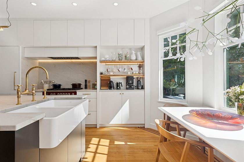 Welcome to one of the most exquisite, custom homes you'll find in Kitsilano. From the beautifully reclaimed oak wood flooring to the incredible oversized quartzite countertops and brass faucets from the UK, not one detail has been overlooked. At the adjacent end of the kitchen island is a large dining area with new double glazed sliding doors leading to a serene backyard patio. The primary bedroom faces south & has a 5-piece bathroom that is completely renovated w/ double sinks, marble countertops & mosaic marble flooring. Marble walls with custom designed niche cut outs for shelving. Basement includes a sauna, structural upgrades include new plumbing (RINNAI), central A/C, new 200 AMP electrical, new windows throughout, new drain tile & sump pump, and so much more. Book your showing!