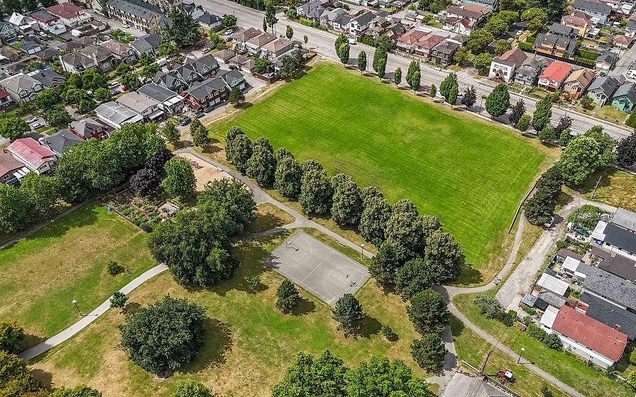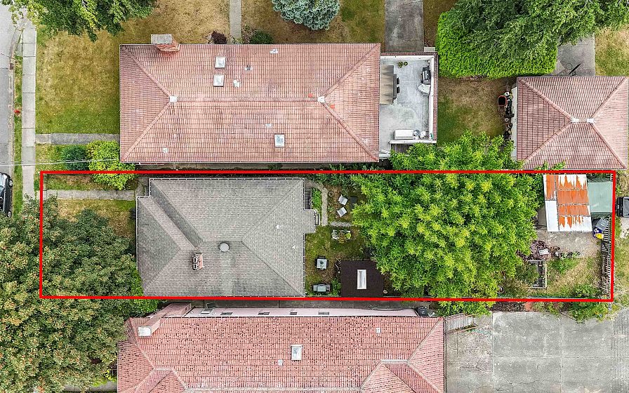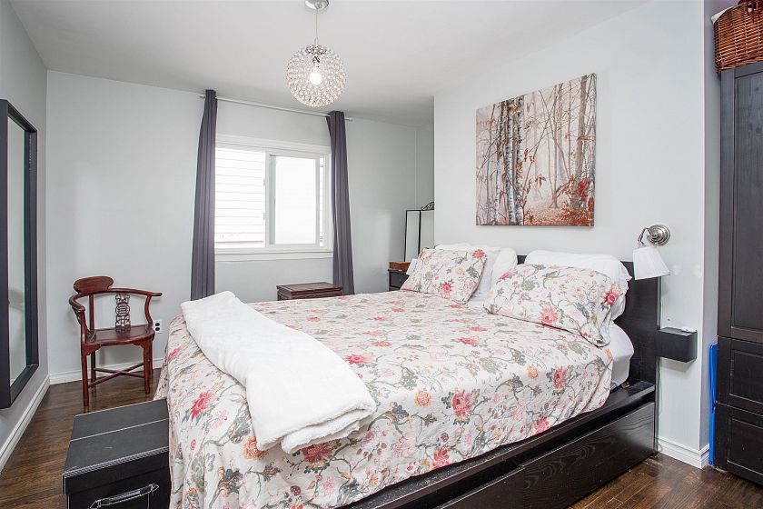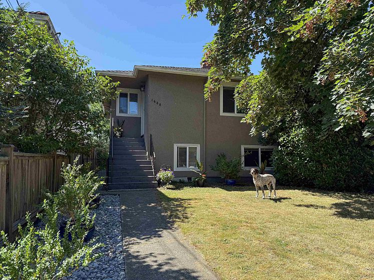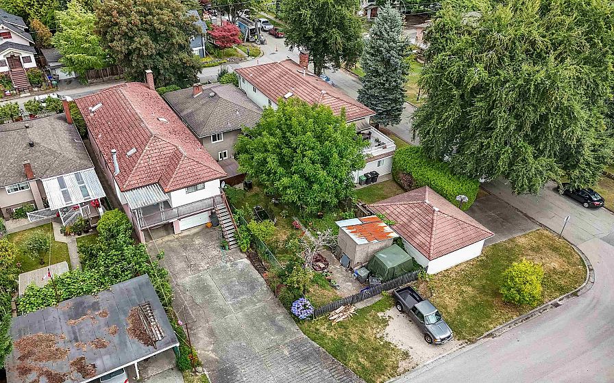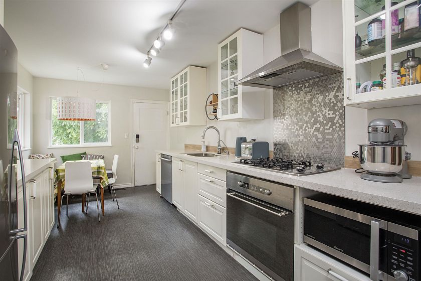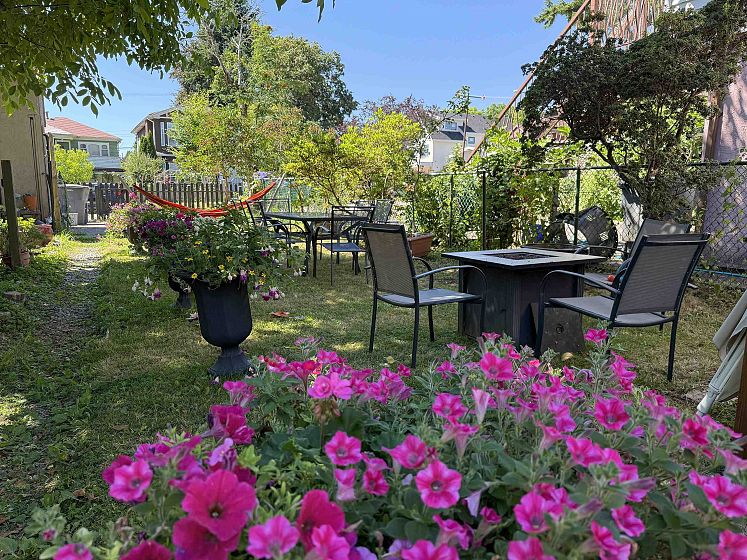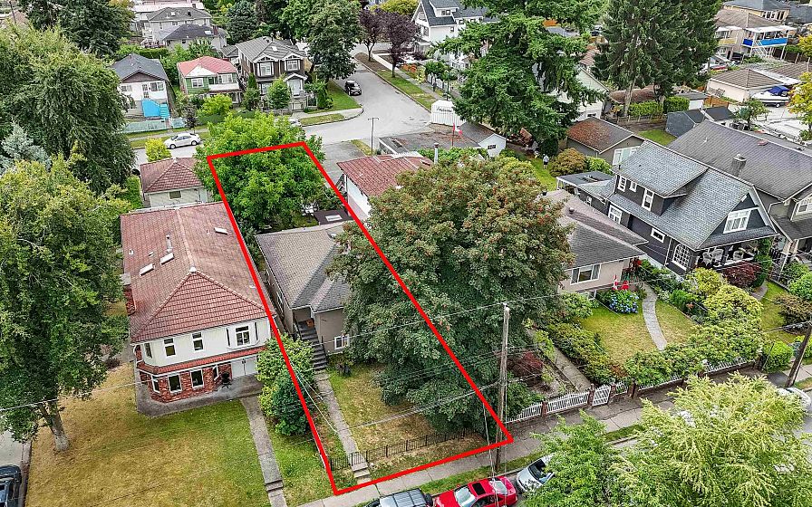 Charming Mid-century bungalow on an oversized 33x155' south-facing lot. Main floor features two bedrooms, formal dining, hardwood floors, and a renovated kitchen and bath with quartz counters and stainless appliances. Full-height three-bedroom suite with separate entry, modern updates, and electric baseboard heat—ideal for extended family, two-family living, or mortgage-helper potential. Enjoy raised garden beds, fruit trees, and ample yard space for entertaining or kids to play. Move-in ready or prime for redevelopment into duplex, fourplex, or single-family home with laneway house on this double fronted lot. Quiet, community-focused neighborhood close to parks, schools, shopping and transit. FIRST SHOW: Nov 6, 6-7pm. OPEN: Nov 9, 2-4pm.