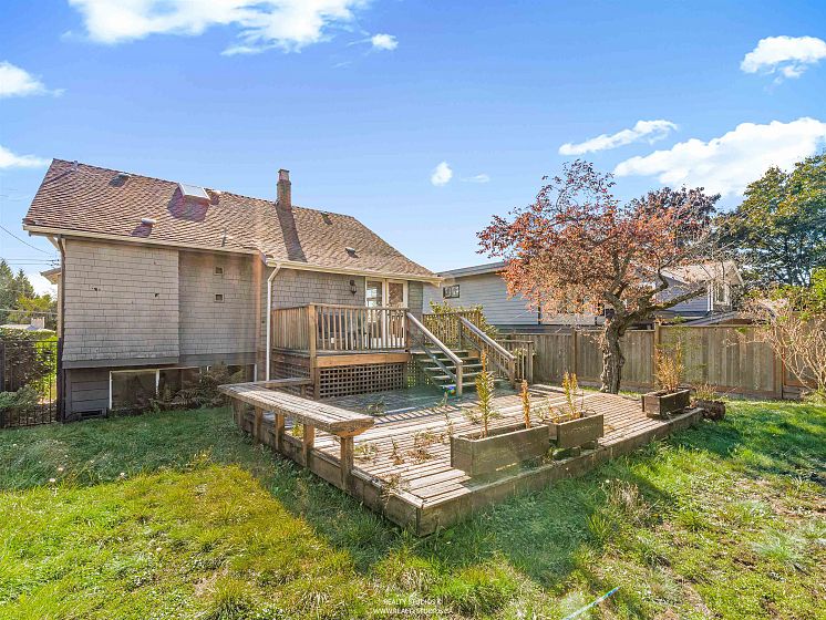 Charming Upper Lonsdale home on a 6,600 sqft lot with mountain views! Main level offers 2 bedrooms, original hardwood floors in the living and dining areas, and plenty of natural light throughout. Upper level features a spacious bedroom with vaulted ceiling. Lower level includes a recreation room with a kitchen and separate entrance, ideal for rental or extended family. Enjoy a fully fenced, flat backyard perfect for kids and pets. Convenient back lane access, close to transit, shopping, and restaurants. Excellent holding, rental, or future building opportunity! Open house Sat Nov 29, 2-3:30 PM.
