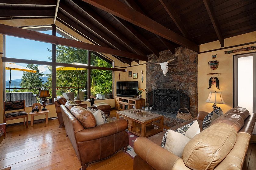 Charming Post and Beam Coastal Cottage with gorgeous Ocean Views! Enjoy one level living with expansive decks and patios perfect for outdoor entertaining! This 3 bedroom rancher also comes with an office area, and a separate studio space. Newer heat pump adds wonderful cooling on warm summer days to keep you comfortable and a WETT certified wood stove is perfect for cool nights. Newer septic system installed. The layout is perfect for artists, musicians, or for those who work from home. Gorgeous vaulted ceilings with exposed beams add to the character of this home on this beautifully landscaped, private .26 acre lot. Located close to the Village store, library, and post boxes. Lions Bay is a lovely community and offers a wonderful West Coast lifestyle! Have your agent set up a showing!