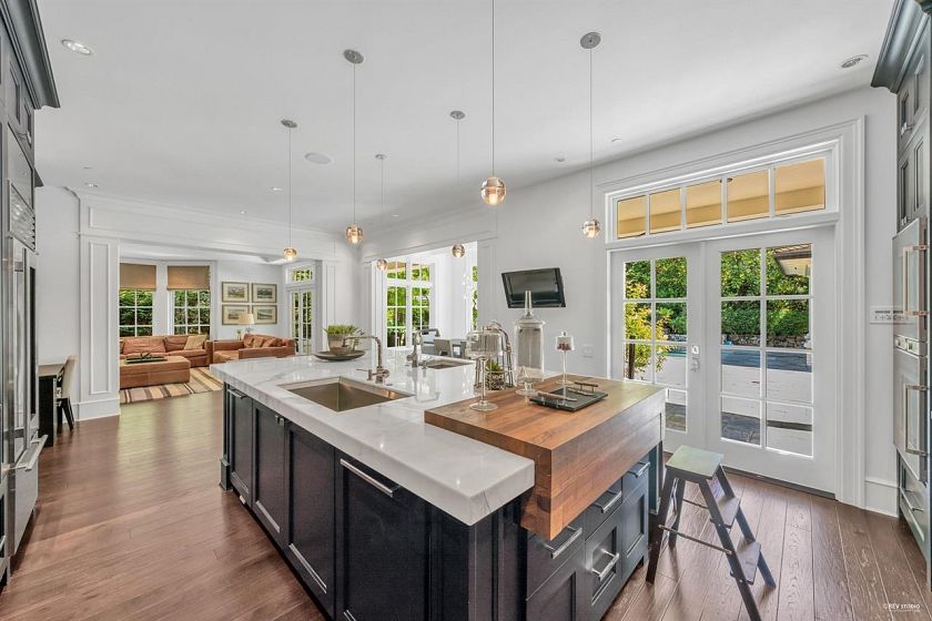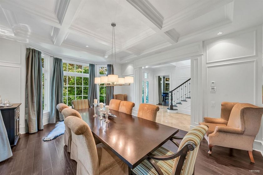 Luxurious custom built world class mansion in most prestigious FIRST SHAUGHNESSY area! Superior standards with high quality materials, workmanship & appliances on a sensational open floor plan sprawled over 4 levels. Situated on a large lot 14,659 SF, boasts 6260 SF elegant living space. This beautiful home with professional exterior and interior design, offers Gourmet Chef's Kitch w/high-end cabinetry and all top brand appls, delightful eating area with cozy bay windows; Master bdrm is oversized with walk in closet and spa like ensuite. Eclipse French Drs, inset panelling, Wine Cellar, Media rm, swimming pool, Jaccuzi & outdoor Cabana. Beautiful landscaped garden. Meticulous attention to detail. Truly a masterpiece of craftsmanship & architectural splendour. Open House Dec.6, Sat. 2-4 pm