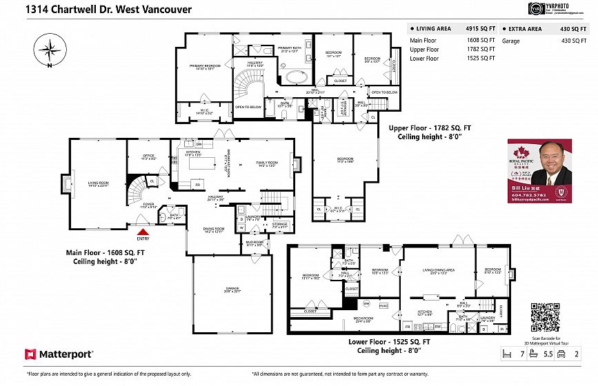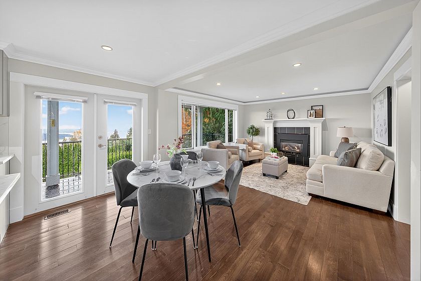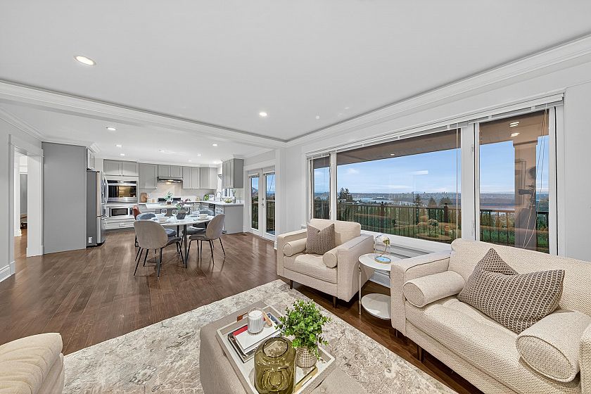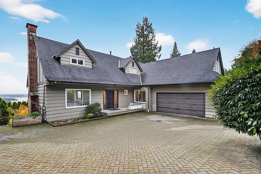 PRIME CHARTWELL location. Bright, spacious, 3 Levels, walk-out basement to the pool. Views ! Awesome city, harbour & ocean view. 7 Bdrm + Office. family room off kitchen, Double Stairs to 4 bedrooms and 3 bathrooms upstairs. Lower level has 3 bed with new carpet and 2 new bath rooms in-law suite. Renovated two kitchens include new painting, doors, window coverings, counter top, appliances, cabinet and upstar hardwood flooring. Spent 150k for replacing drainage pipe. 10 years old roof. Privacy and Gated 15 meters Swimming pool and covered Jacuzzi. For hold to build your dream home. Steps to Chartwell & Sentinel school, bus, Hollyburn Country Club.