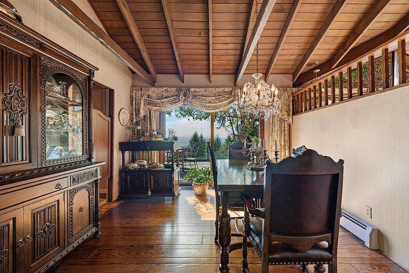 ARCHITECTURE & EPIC VIEWS, this iconic West Van residence is a rare offering! Set on almost 13,000 sq ft perfectly sloped property with SPECTACULAR SUNSETS, this architectural gem was originally custom built by Bob Lewis. A true example of exposed post-and-beam style, it features dramatic vaulted ceilings, Texas Select Oak flooring, specialized windows, and timeless design that blends naturally with its surroundings. VIEWS FROM EVERY LEVEL! Kitchen features Miele d/w, Wolf oven, Thermador cooktop, SubZero Fridge, and VIEWS FROM THE KITCHEN SINK! Spacious primary suite +2 more beds & den. Walking distance to Collingwood, this property offers valuable land and the irreplaceable architecture—a home of pedigree and vision.