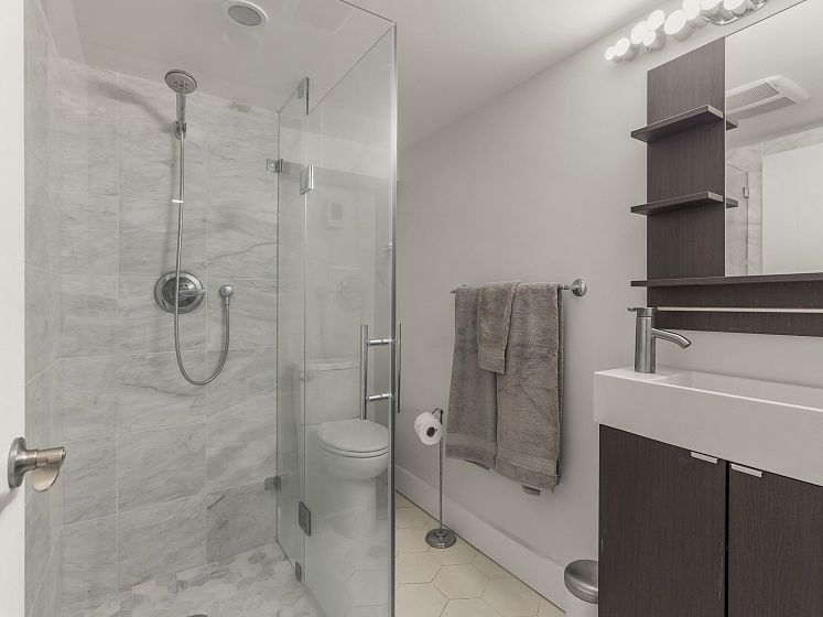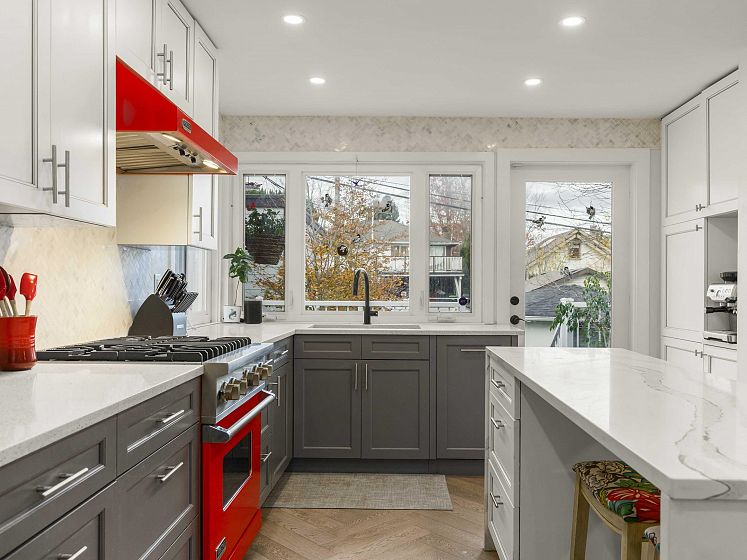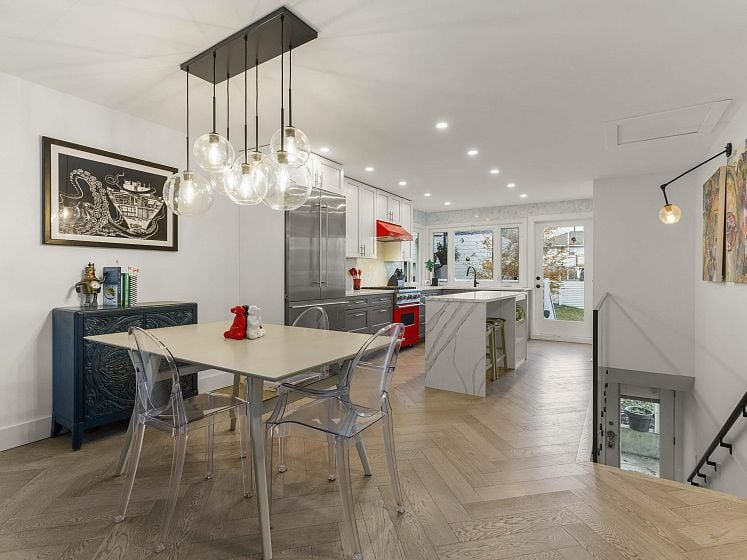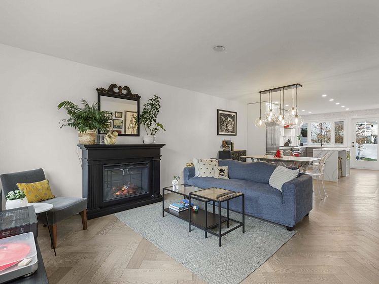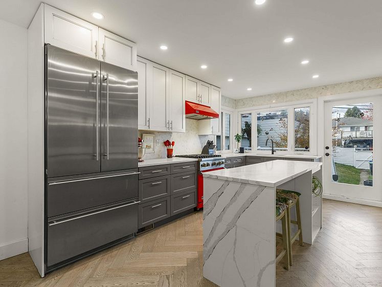 Introducing a beautifully remodelled family home in the vibrant neighbourhood of Main/Fraser. This residence boasts modern interiors that exude warmth & comfort. The main floor features an open-concept layout, adorned with engineered herringbone wood floors. The chef's kitchen showcases custom cabinetry, a gas Viking stove, a Liebherr fridge & an expansive island topped with stunning marble. Completing this level are 2 spacious bedrooms & a spa-inspired bathroom, complete with Nu-Floor heat. The basement features a versatile recreation room, a hobby space, a cozy bedroom, a bathroom & an office. Other features incl. A/C, a Nest thermostat, & a private, fenced backyard that offers a serene oasis. Located moments away from schools, parks, cafes, & restaurants along Main & Fraser Street.