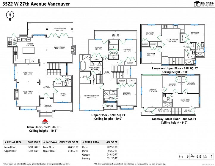 Located in the desirable Dunbar area. The main house features 6 bedrooms (4 above, 2 below), 1 den, and 5.5 baths, with stunning downtown and mountain views. High ceilings, crown moulding, elegant oak hardwood and limestone floors, and a gourmet kitchen with quality appliances enhance the home's appeal. The digital media room and large patio with BBQ are perfect for both relaxation and entertainment. Additionally, the seller has recently constructed a laneway house this year, includes 5br 2bth. With its prime location, this home offers excellent rental income potential: $3,000 per month for the main floor and $5,000 per month for the laneway. The property is conveniently located near UBC, Lord Byng Secondary, and Kitchener Elementary, with a 5-minute drive to UBC and several golf courses.