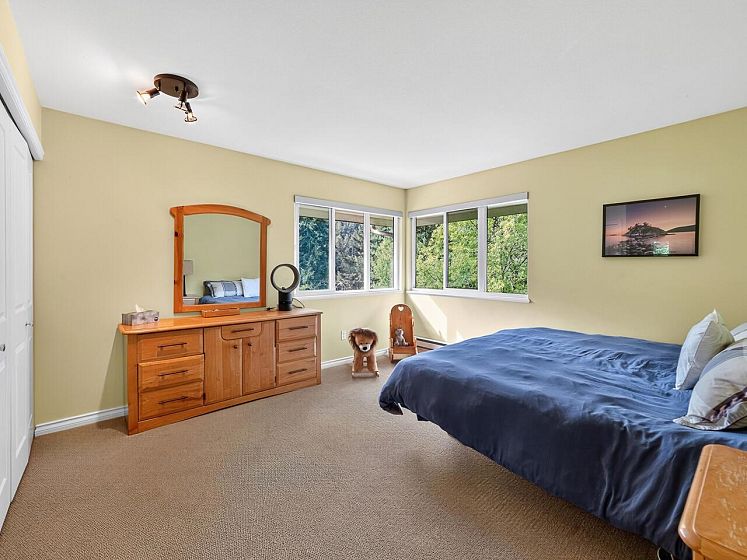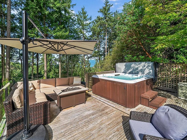 Nestled at the end of a quiet cul-de-sac in Eagle Harbour, this 3-bed, 3.5-bath family home offers incredible privacy and peekaboo ocean views. Bright and inviting, this home features California shutters, two gas fireplaces, and a white granite kitchen with large island, perfect for gatherings. The upper level includes 3 bedrooms, including primary suite with a spa-inspired ensuite bathroom. Downstairs offers a sizeable rec room and great storage. Enjoy the fenced backyard oasis with hot tub, and a 2-car garage with Tesla charger. Close to Eagle Harbour Elementary and Rockridge Secondary, it’s the ideal family retreat. Call for your private showing. Open Sat 2-4