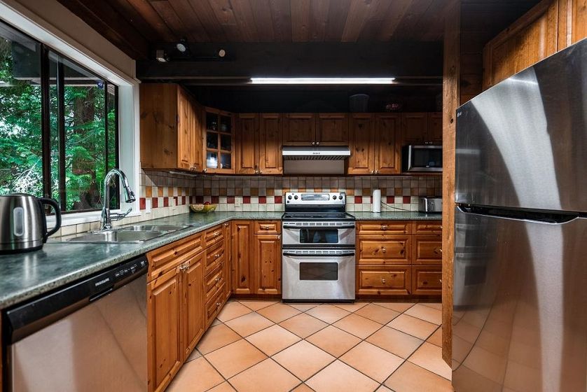 Welcome to this bright 4-bed Caulfeild A-frame by Nor-Wes Chalet on a 13,946 sf lot backing onto mature evergreens. West Coast cedar build with 22-ft vaulted ceilings, floor-to-ceiling windows & wood-burning FP in an open-plan great room opening to a large south deck. 2,332 sf over 2 levels: 4 well-separated beds incl. private primary wing, flexible lower-level rec/guest space & 3 baths. Updates incl. high-efficiency boiler & stainless appliances. Flat drive, garage & parking for 4+. Near Caulfeild Village, parks, Stearman Beach, Rockridge, Caulfeild Elem, Gleneagles Golf, Hwy 1, Cypress.