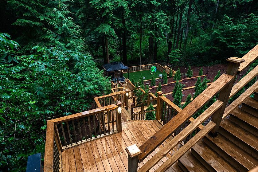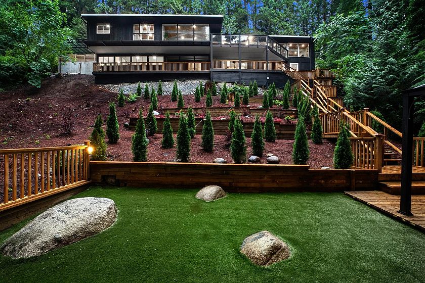 This beautifully renovated 5 bed, 4 bath home in the prestigious British Properties showcases picturesque windows framing garden, forest and mountain views. The main floor features a stunning vaulted post and beam living room with a grand wood-burning fireplace, an elegant dining room, gourmet kitchen, bar and a warm, inviting family room—all flowing onto a large deck ideal for indoor/outdoor living. Also on this level are 3 bedrooms and 2 stylish designer bathrooms. The lower floor offers a spacious rec/media room, office or guest bedroom, full bath as well as a 2 bedroom suite with separate entrance and patio. Tiered gardens, custom stairs and a tranquil gazebo complete this serene setting.
