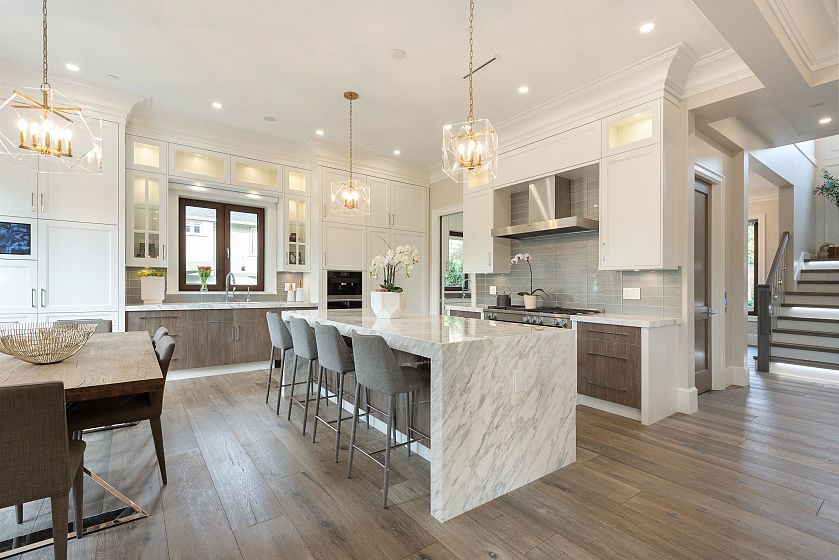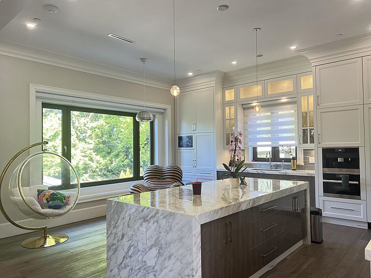 An extraordinary 4-level, 5-bedroom, 6.5-bathroom elevator served West Coast Modern masterpiece, nestled in the prestigious Shaughnessy neighborhood. As you step through the solid core front door, you are immediately welcomed into an expansive open-plan living space, elegantly appointed with Bocci chandeliers and exquisite White Oak solid wide plank flooring. The west-facing orientation and expansive turn-and-tilt windows fill the home with a generous flow of natural light, creating an inviting ambiance. The chef’s kitchen and wok kitchen showcase high-gloss cabinetry, Calcutta Gold waterfall countertops, and elite appliances, including a cappuccino machine and steam oven, designed for the most discerning culinary enthusiasts. Entertaining at this residence is effortless. True exceptional.