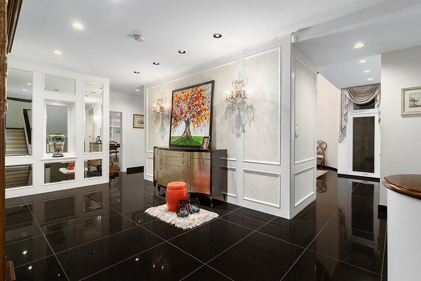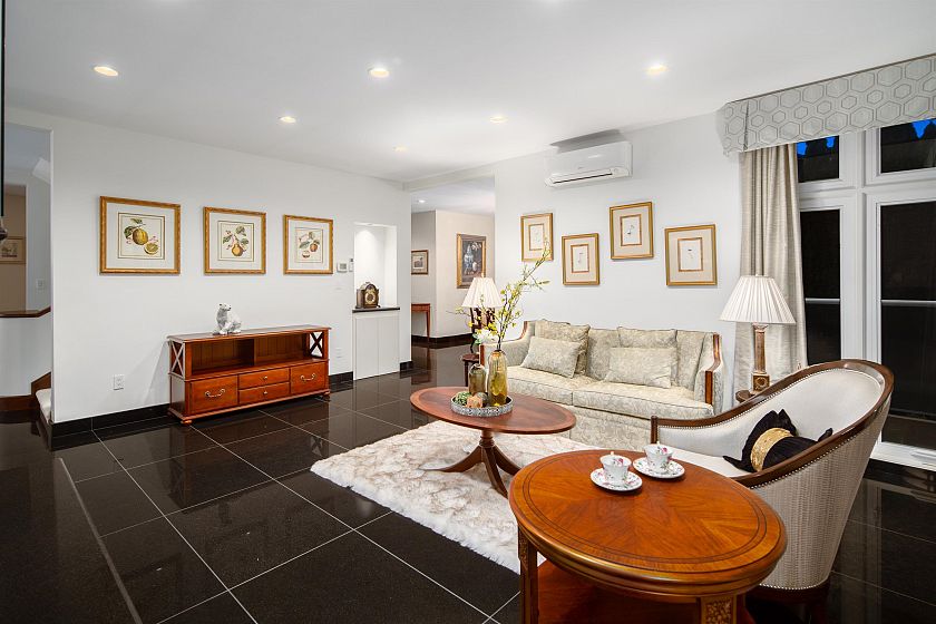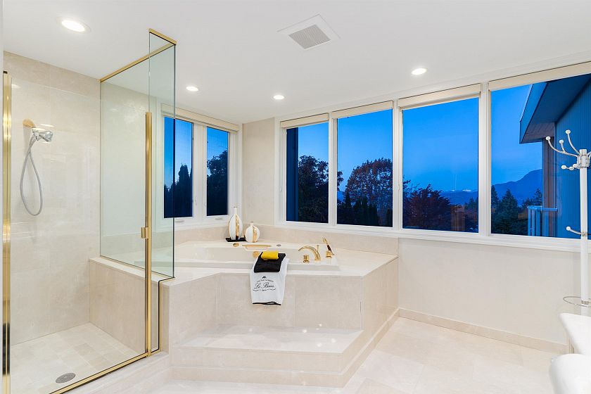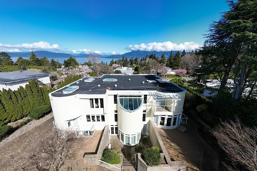 A stunning presence in the most prestigious pocket at UBC. Beautifully treelined and meticulously landscaped garden offers ultimate serenity and privacy. Excellent Fung Shui - Jade Dragon/White Tiger, gently sloping upwards and facing north to the fantastic panorama view of Georgia Strait and Northshore Mountains. Contemporary "Art Moderne" inspired residence is bold and magnificent. The interior boasts a double-height foyer and formal dining room. Living & family rooms have views. 2 dining rooms, a private study, open kitchen, wok kitchen on main floor. 4 grand ensuite bedrooms on 4 corners upstairs. 2-bdrm nannys' quarters, movie theatre, large wine cellar and lots of recreational space in the basement. Extremely well maintained and major updates throughout.