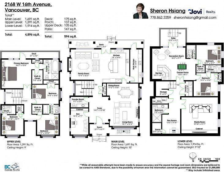 Luxurious Custom Home with Mountain Views! Immaculately maintained 6-bedroom residence featuring soaring 10ft ceilings on both the main and basement levels. Designed with high-quality craftsmanship and exquisite finishes, this home offers a gourmet kitchen plus functional wok kitchen, both equipped with top-of-the-line appliances. Enjoy ultimate comfort with a steam room, jetted tub, A/C, HRV, home theatre, built-in sound system, wet bar, sauna and a 4-car garage. Perfectly located with quick access to shopping, transit, downtown Vancouver, UBC, and Richmond. Top school catchments: Trafalgar Elementary & Prince of Wales Secondary. Just minutes to prestigious private schools including York House, West Point Grey Academy, Crofton House, and St. George's. Book your private showing today!