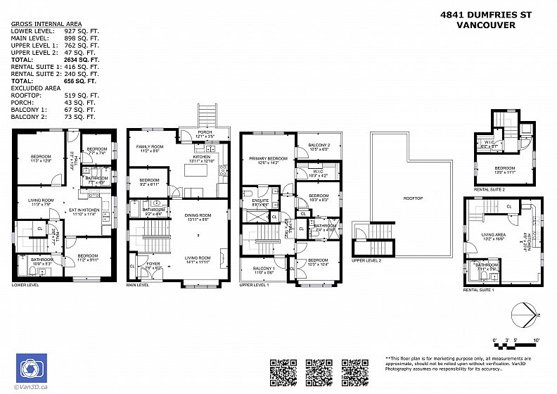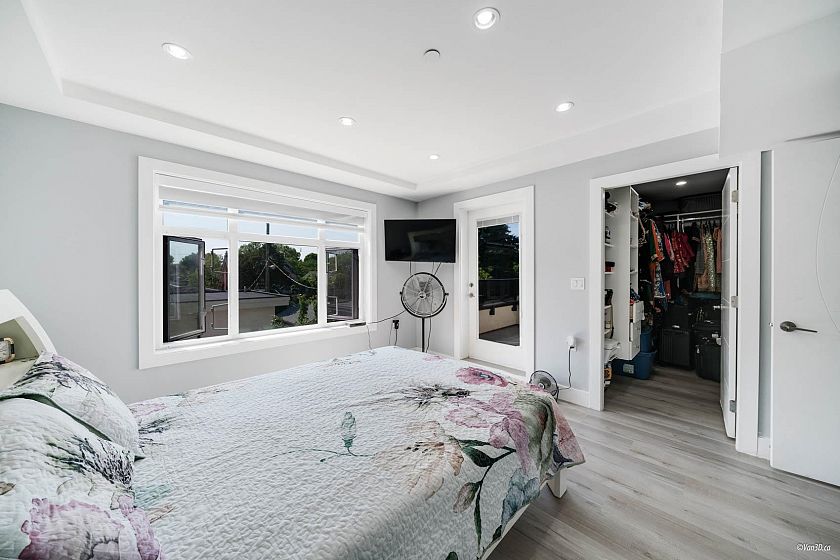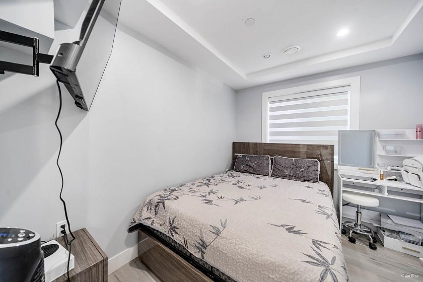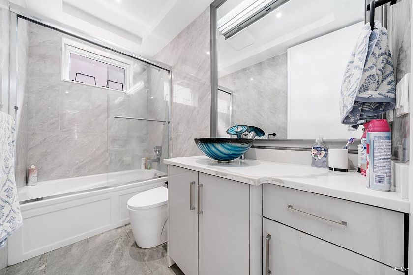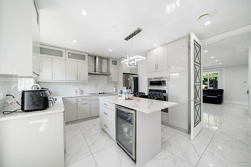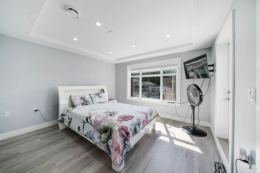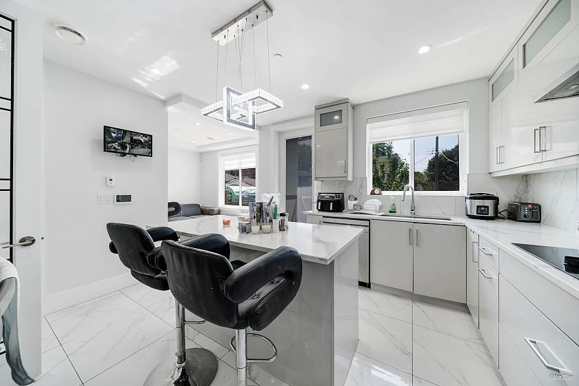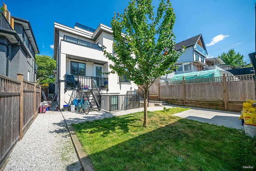 Custom-built 3-level family home with a fully finished 3-bedroom basement suite and laneway house in the desirable Knight and East 33rd area. Features a bright, open-concept main floor layout with a bedroom ideal for extended family or a home office. Designer kitchen with island and stainless steel appliances, oversized tile flooring, and stylish glass railings. The top floor boasts 3 bedrooms and a breathtaking private rooftop deck with mountain views. The primary bedroom includes a spacious walk-in closet and an ensuite with double sinks and a rain shower. Separate laundry in each suite. Two sump pumps for added peace of mind. Conveniently located near Kensington Park and Community Centre, T&T Supermarket, and transit.