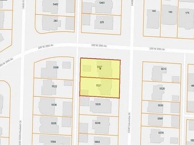 DEVELOPERS & INVESTORS ALERT!To be sold together with 5521 Columbia Street, offering a combined frontage of 98 ft and depth of 115 ft Northwest Corner lot with lane access - Columbia St. & W. 39th Ave. part of PHASE 3 CAMBIE CORRIDOR PLAN approved for development of townhouses 1.2 FSR. Excellent investment and land assembly. House needs TLC but is livable and has 4 bdrms, den, 2 baths and spacious living room and recreation room. Property is walking distance to the Canada Line & Oakridge Mall. One block from Queen Elizabeth Park, Nat Bailey Stadium, Pitch and Putt Golf, Curling, Tennis & numerous walking & bike trails.