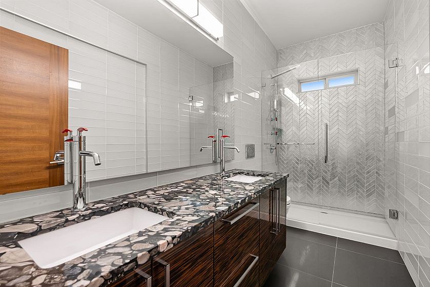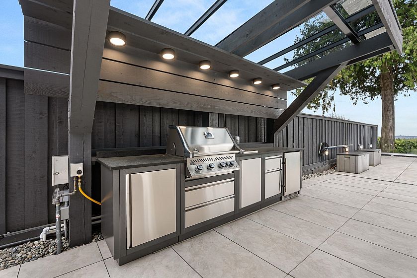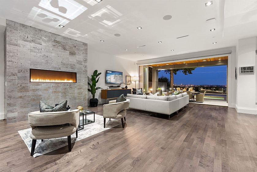 Perfectly perched above the coastline with fast access to Hwy 1, this modern 7,500+ sq ft West Vancouver estate delivers sweeping ocean views from Lions Gate Bridge to UBC and Vancouver Island. Completed in 2020, it offers a chef's kitchen with Miele appliances, a full spice kitchen with Wolf range, granite island, built-in coffee station, Control4 smart system, AC, radiant infloor heating, and an elevator. Outdoor living shines with expansive decks, a sleek pool, and low-maintenance landscaping. The home includes up to 7 bedrooms and 8 bathrooms, a spa-inspired primary suite, gym, sauna, steam room, wine room, legal suite, and a media lounge with movie room and games area, creating an exceptional place to call home.