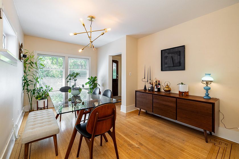 Rarely available three floor character home in Point Grey. This property boasts an ideal blend of family comfort and investment potential. The well-maintained 5-bedroom, 3-bathroom home is surrounded by gardens and a charming private terrace. Functional layout features two generously sized bedrooms and a bathroom upstairs, complemented by another bedroom on the main floor. Rich oak hardwood floors adorn the main level, where a cozy -burning fireplace graces the living room, a separate dining room invites gatherings, and a bright kitchen with an eating area leads to a spacious deck overlooking the private backyard. The lower level accommodates two bedrooms with a separate private entrance, complete with an easting area and laundry facilities, fully licensed airbnb generating great income.