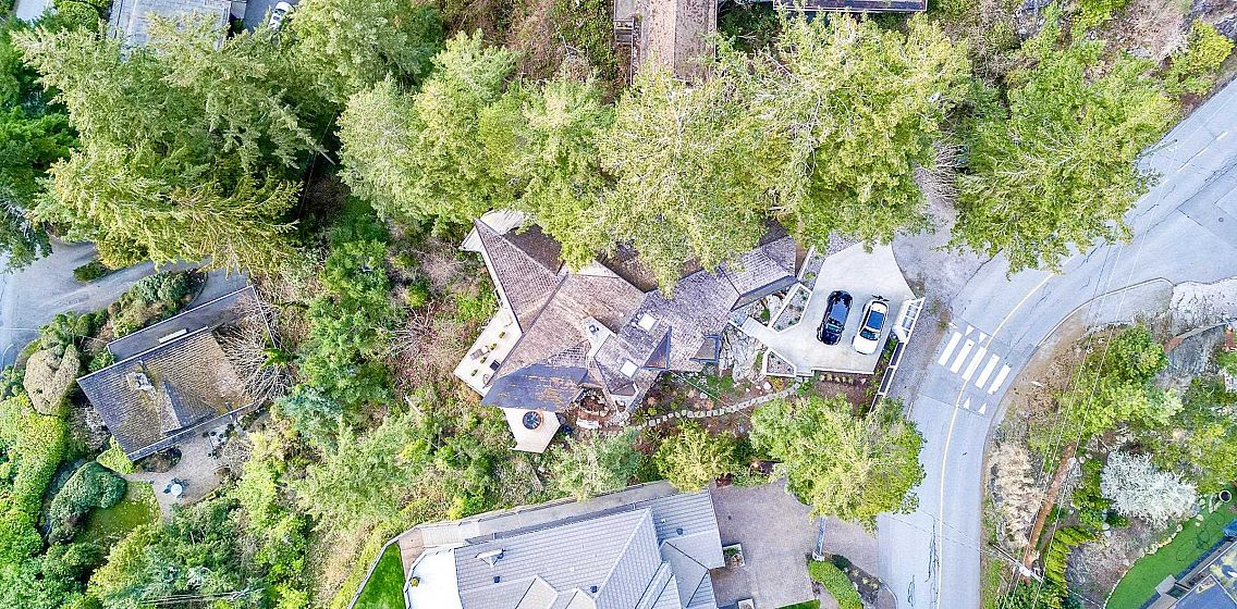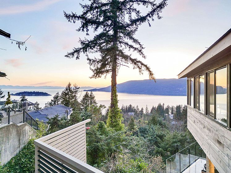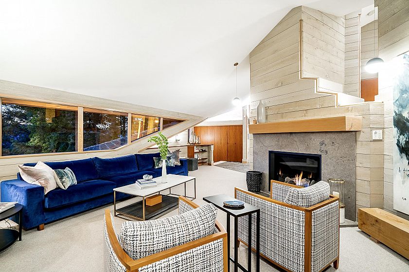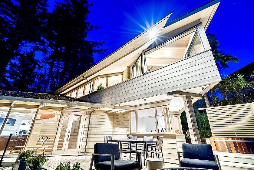 The Case Residence in Eagleridge is a remarkable example of modernist design in the mid last Century! This Ron Thom design is a diagonal & multi-dimensional 2 level restored to exacting standards. The Geometric House is inspired by Frank Lloyd Wright’s hexagon floor plans & compliments the natural lighting & surrounding landscape. Situated on 13,815 SF & offers approx 2,826 SF open plan, 3/4 bed incl primary with walk-in & ensuite, 4½ bath, living area w/adj office, priv den, custom kitchen & adj dining rm as well as a pavilion, perfect as a rec area or for guest accommodation. Wrap around decks w/jacuzzi capture extended vistas & the incredible views of Howe Sound. A West Coast Masterpiece & according to the District of WV is “one of the finest examples of Ron Thom’s creative abilities”.