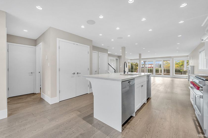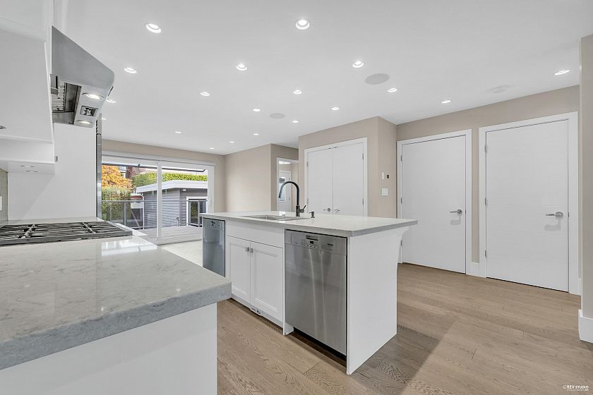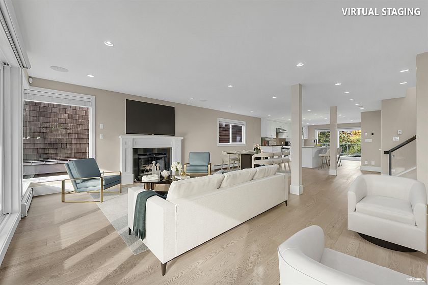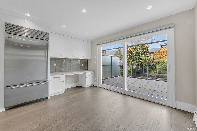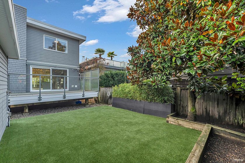 Situated on a quiet, sought-after street in Lower Ambleside, this custom-built 4-bedroom modern home has been extensively renovated with permits—including new roof, exterior, windows, and a stunning gourmet kitchen featuring Sub-Zero, Wolf, and Miele appliances. Additional upgrades include built-in speakers, a security system, and an in-ground sprinkler system.Enjoy spectacular ocean views from your sun-soaked south-facing primary bedroom, living room and expansive outdoor patios—perfect for alfresco dining and entertaining.Just a short stroll to the beach, seawall, and Ambleside’s shops and cafés, this is a rare opportunity to own a beautifully updated, move-in-ready home in one of West Vancouver’s most desirable neighbourhoods.