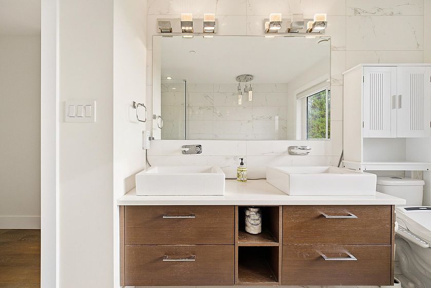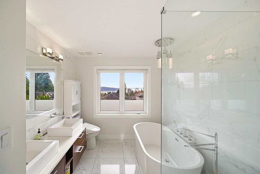 Modern Ambleside home with south-facing views of Lions Gate Bridge, ocean, Stanley Park, and UBC. This 5 bed, 5.5 bath residence features radiant in-floor heating on all levels, A/C with heat pump, EuroLine windows, and a built-in air purifying system. Open layout with marble-accented fireplace, chef’s kitchen with Gaggenau appliances, and separate wok kitchen. Covered patio with built-in BBQ and gas hook-up for heater. Lower level includes a Rec Room(potential room) & a Media room and a legal suite—Great mortgage helper. All bedrooms have ensuites. Walk to Ambleside Beach, Park Royal, the seawall, library, rec centre, shops, cafés, transit, West Vancouver Secondary, Ridgeview Elementary, and close to top private schools including Collingwood & Mulgrave. Video: https://youtu.be/W65TwWiElIs