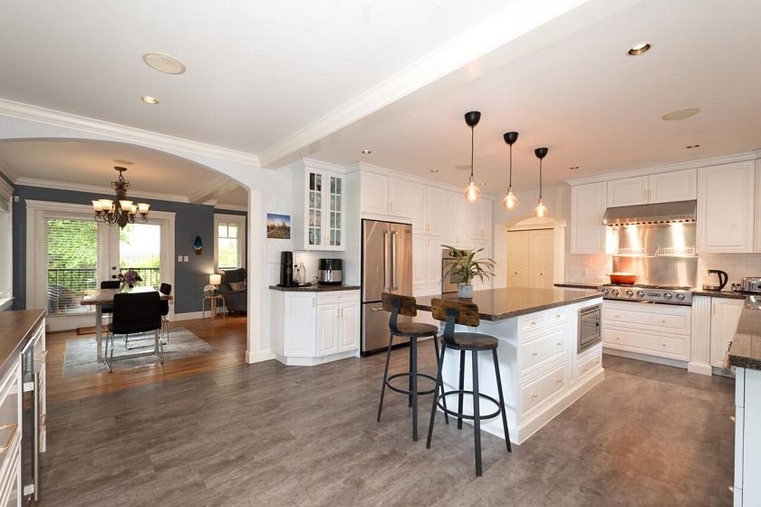Beautiful Craftsman-style home in West Vancouver offering exceptional flexibility and comfort. Upstairs features three ensuited bedrooms, including primary with a walk-in closet and jacuzzi tub, plus two additional rooms ideal for offices or extra sleeping space. Heated floors enhance all main and upper bathrooms. Legal two-bedroom suite with its own laundry and entrance. Main showcases gourmet kitchen with a large island, built-in wine fridge, A/C, and smart lighting. Sunny, landscaped, fully fenced backyard complete with smart irrigation, hot tub, and generous patio/deck areas. Detached double garage. Walking distance to schools, dining, Park Royal, and recreation with quick access to downtown, highways, and transit. Substantially rebuilt in 2005 with renovation in 2019!